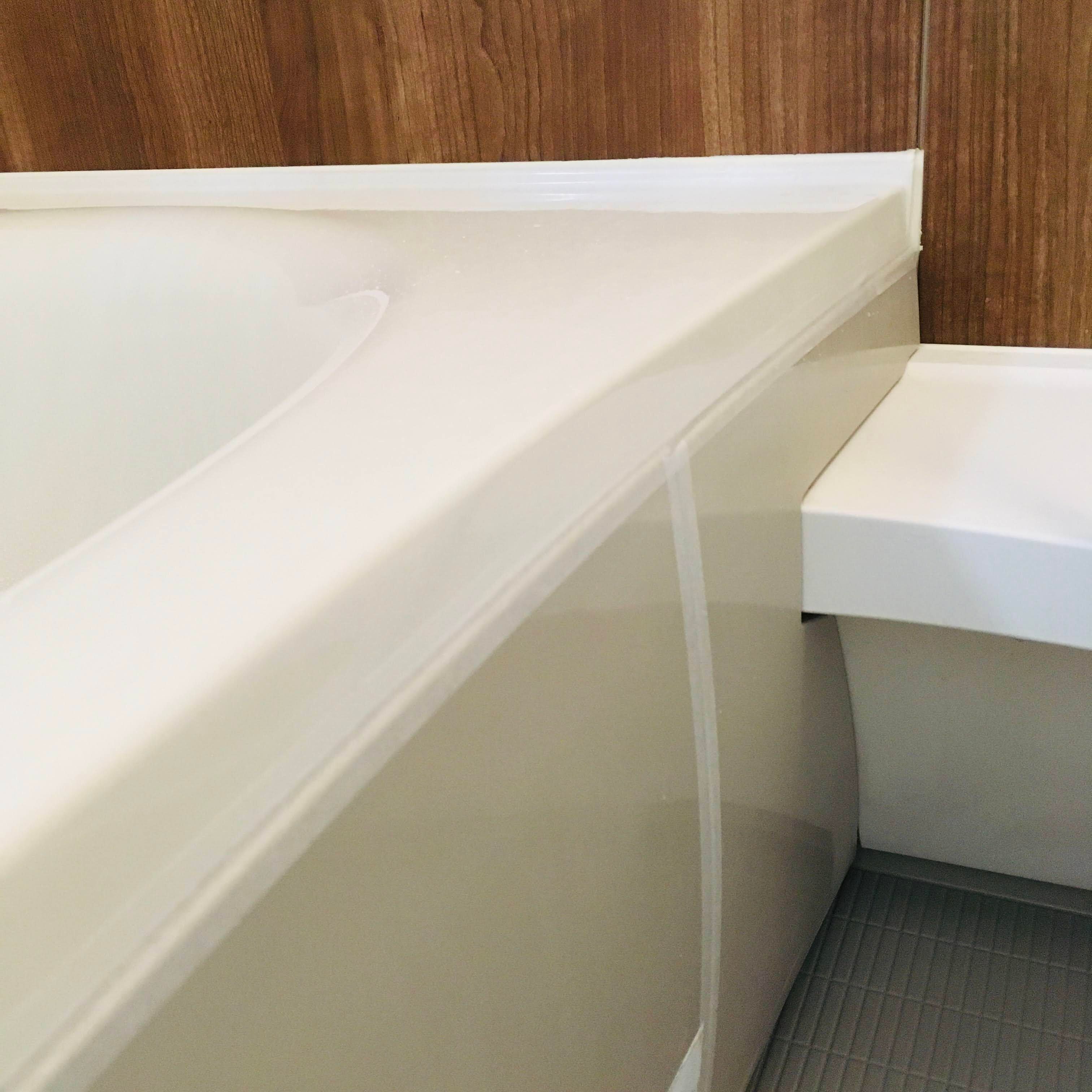 前回の掃除のあと、浴槽エプロンの隙間にマスキングテープを貼っていました。