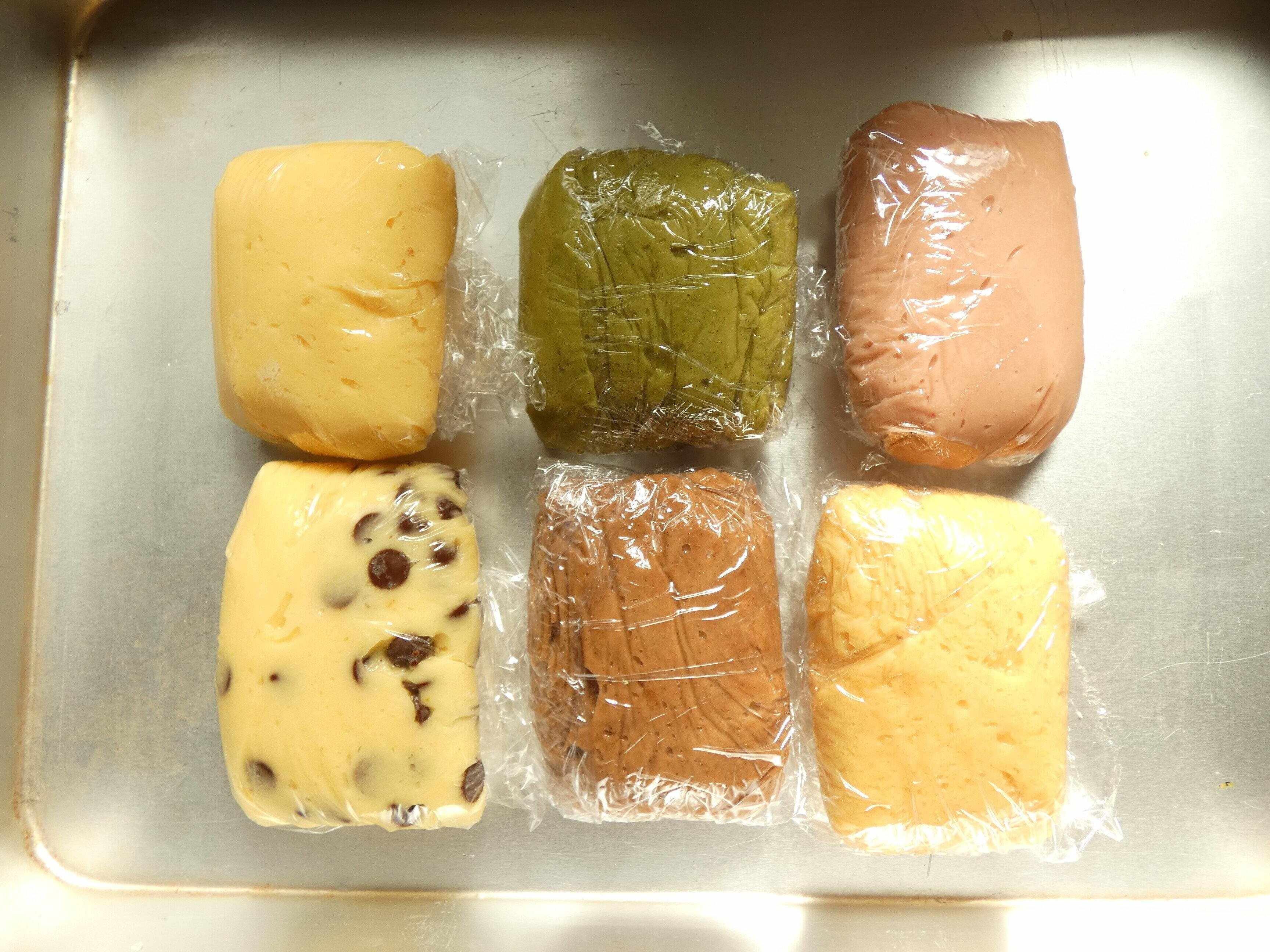 基本の生地にココアパウダーや抹茶パウダー、きな粉やチョコチップなどを混ぜ合わせると、いろいろなメロンパンが楽しめます。