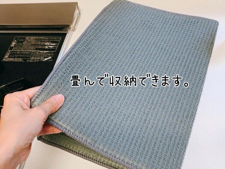 水切りマットもさまざまな種類が販売されています。私が愛用しているのは、100%ポリウレタンフォームで満たされたメッシュ層のマットです。選んだ大きなポイントは、そのまま洗濯できるという点と畳んでコンパクトにして収納できるという点です。