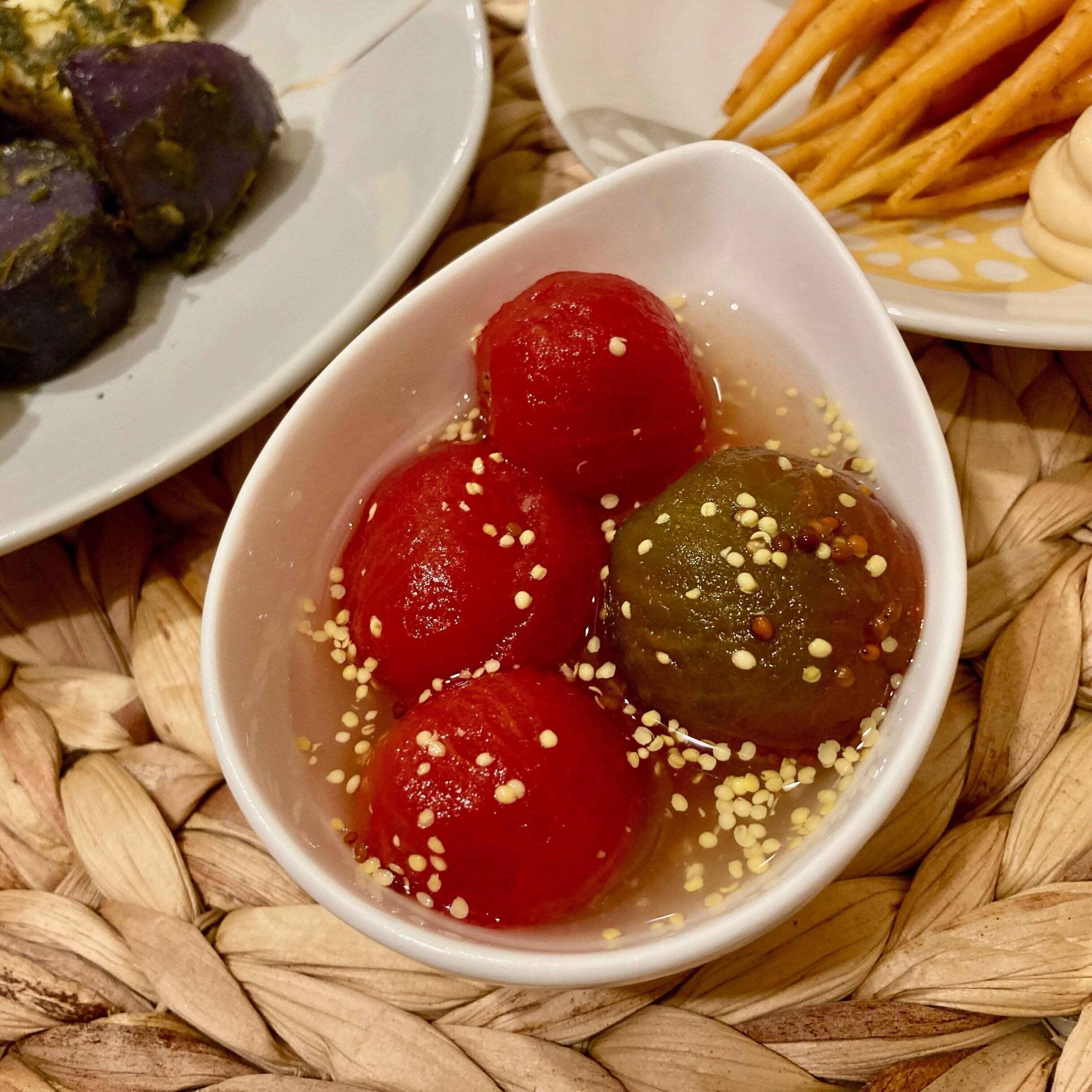 たくさんもらったミニトマトの大量消費にもぴったり。もちろん少量でもおいしく漬かります。夏にもらって食べきれなかったトマトが冷凍庫に眠っているという方、ピクルス好きの方、トマトの新しい食べ方を探していた方も是非試してみてください!