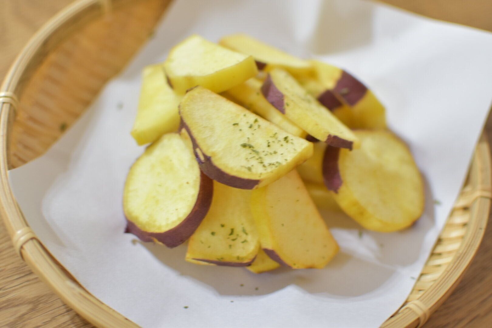 食べやすいサイズにカットしたさつまいもを素揚げにし、塩を振るだけ。