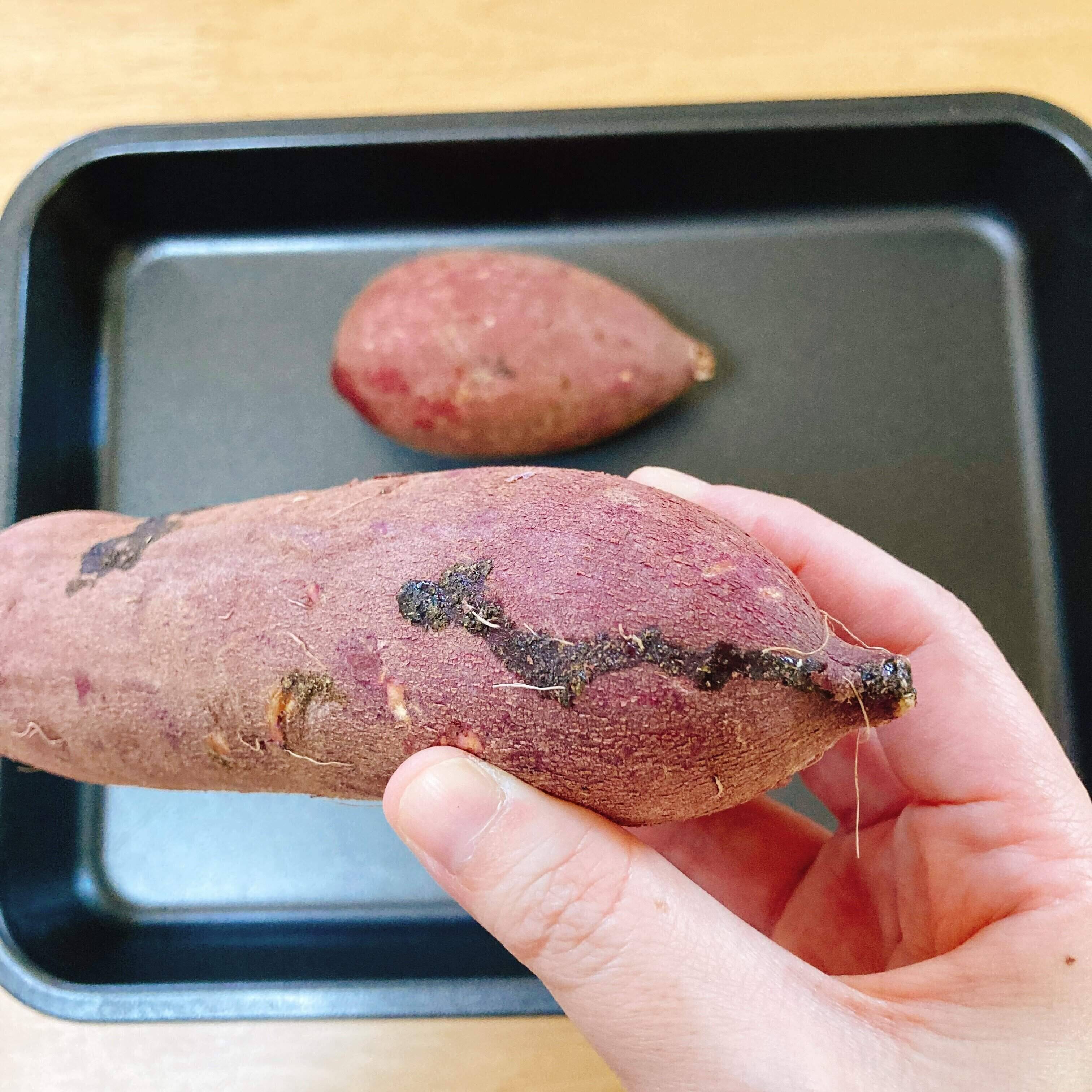 さつまいもをよく洗って、しっかりアルミホイルで包み