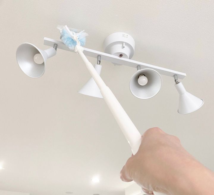 最長96cmまで伸びて、長さを3段階に調整可能。角度は5段階に調整可能で手の届かないところもラクラク!ホコリをからめ取って離しません。先端の青いところは使い捨てられるのでとても衛生的です。