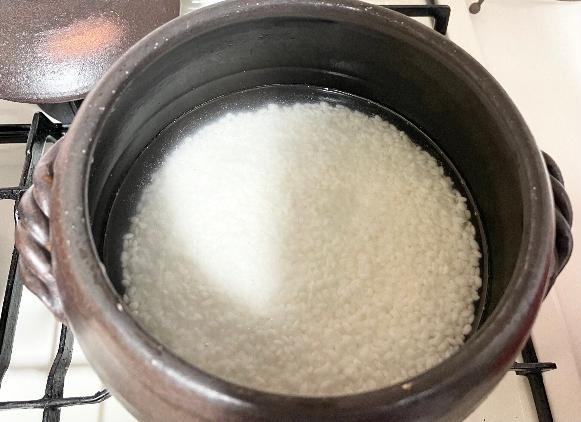 土鍋炊飯でお米を浸水させる際、「土鍋が少し水を吸うため、別の容器に入れた方がいい」とされていますが、20分ほどの短時間ならそのままでも変化はありませんでした。