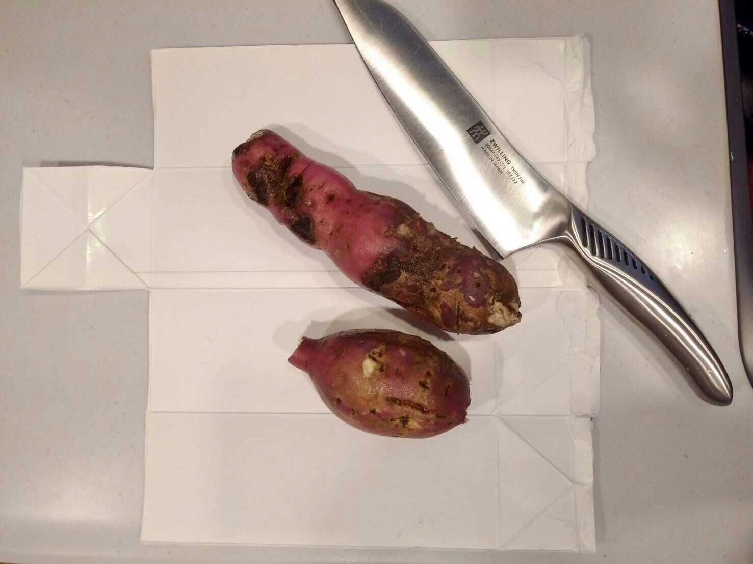 たわしなどでしっかり洗ったさつまいもですが、手洗いの場合、土を完全に落としきれているのか心配なところです。