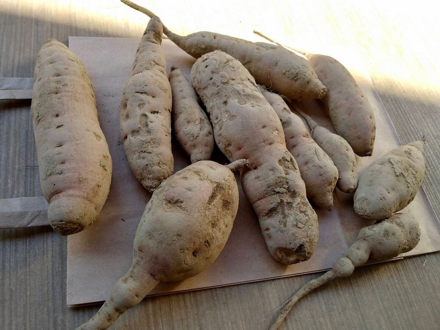 掘りたてのさつまいもはしっかり乾かすことで甘味が増すそうです。また余計な水分が残っているとカビの原因にもなるので4日~1週間ほど土がついたまま風通しのよいところで日陰干しをします。