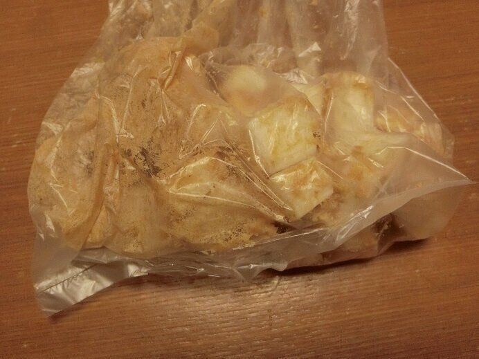 2.ポリ袋に長芋とから揚げ粉を入れて振り混ぜます。