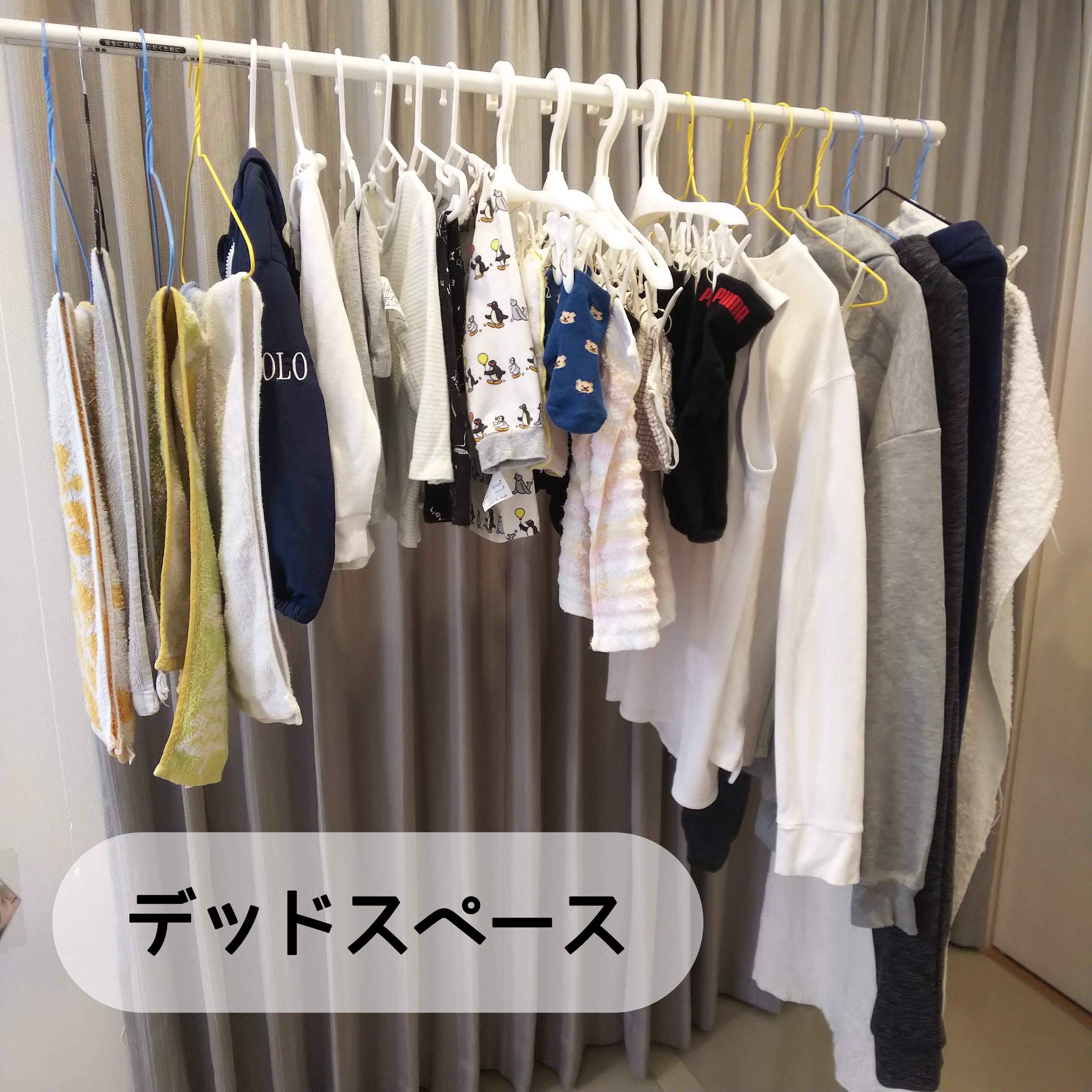 しかし、まだ干せるスペースがあるんです!デッドスペースと書かれた部分にも干せるようにできる目からウロコ術を2つご紹介します!
