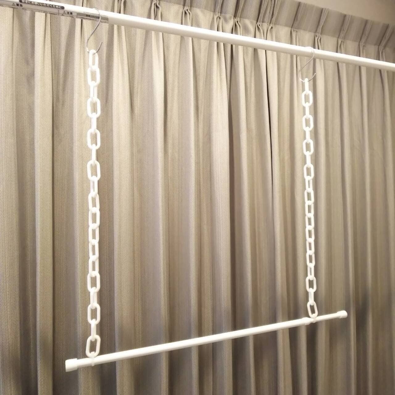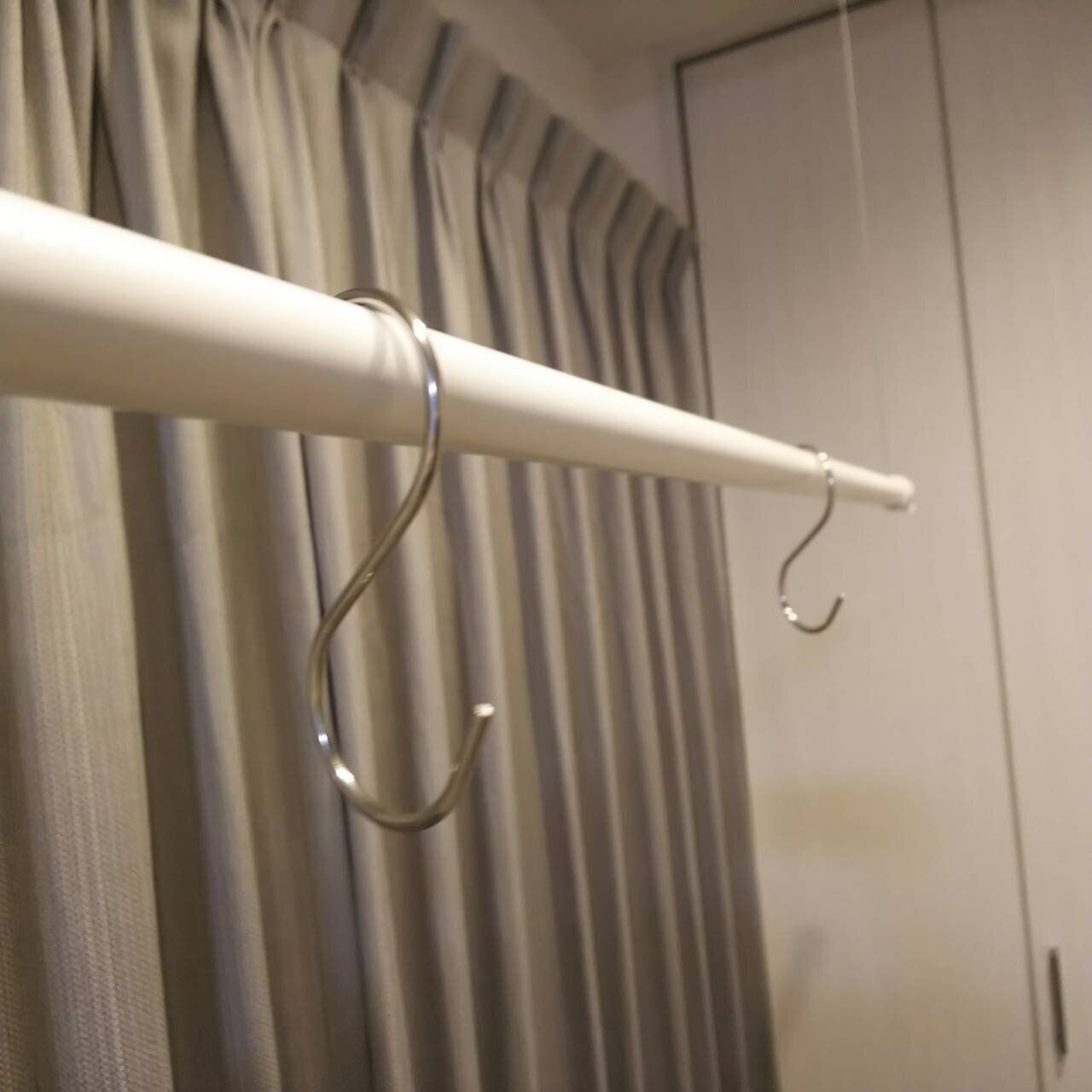 2. 部屋干しのポールにS字フックを2つ引っ掛ける。
