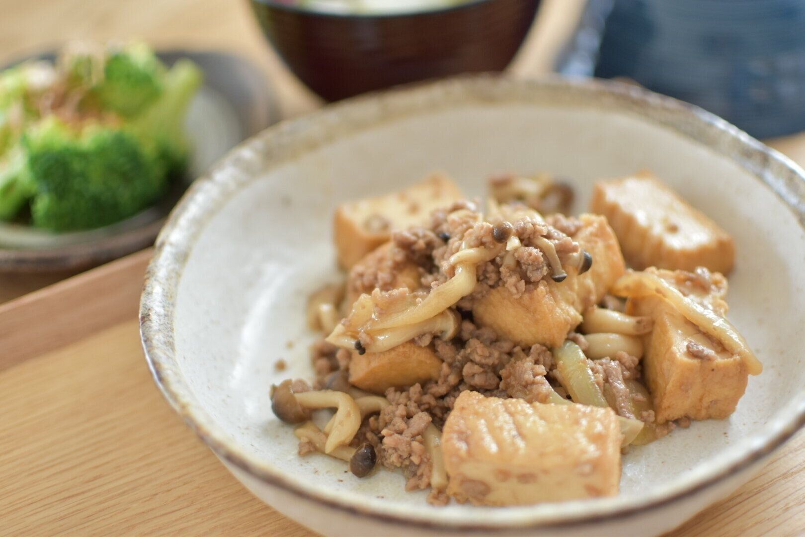 今回のメニューはお肉のような華やかさはないけど、良質なタンパク質の持ち主、「厚揚げ」が主役です。お財布にも優しくコスパもばっちり。