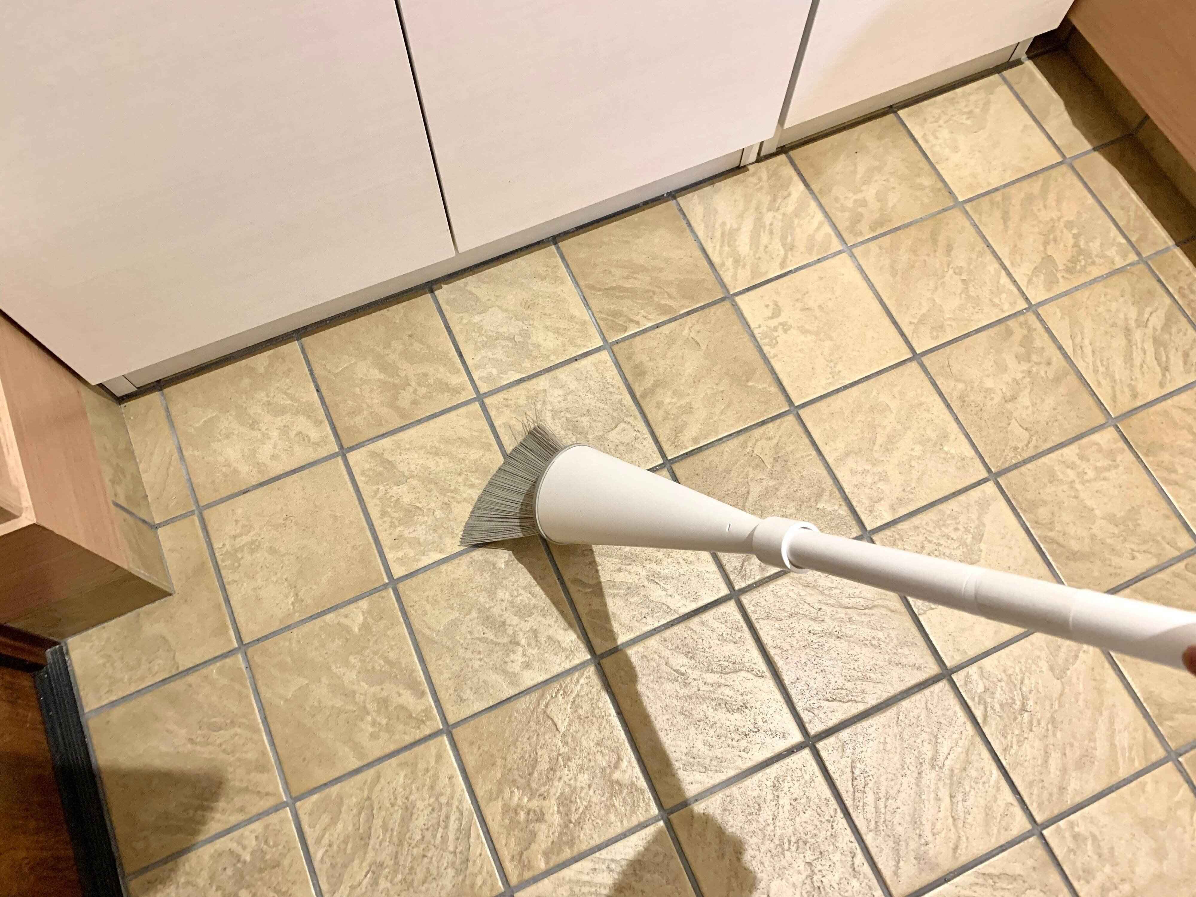 家族が出ていったあとの、靴が出ていない玄関だともっと早くすみます。さっと掃除ができるようにホウキとちりとりは取り出しやすいところにしまっておくのがオススメです。我が家はスリムタイプの小さなホウキを下駄箱に入れています。