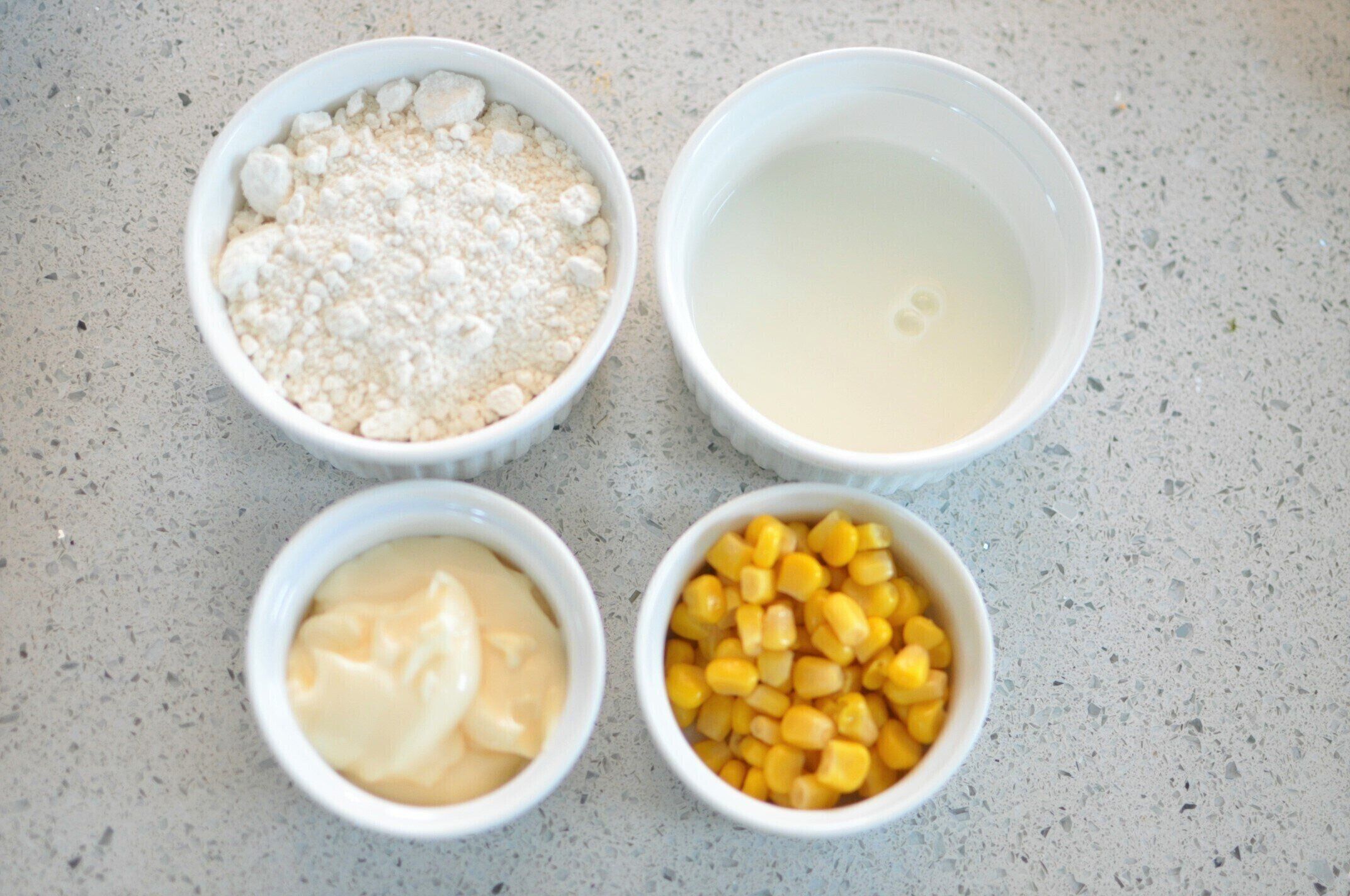 マヨネーズとコーンを混ぜておき、伸ばした生地の上にたっぷりのせます。マヨネーズが多そうに見えますが、焼いている過程で生地に馴染んでちょうどよい感じに仕上がります。