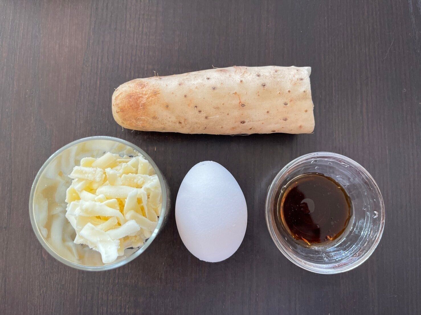 (1)長芋は皮を剥く。卵は白身と黄身をわけておく。
