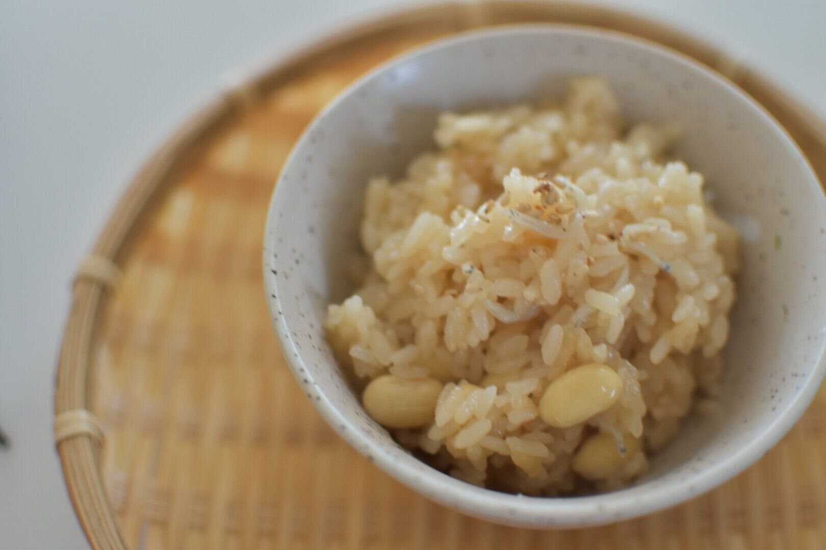 しょうゆベースの炊き込みごはんは、大豆との相性もばっちり。大豆の水煮を使うので、包丁を使わずに作れます。