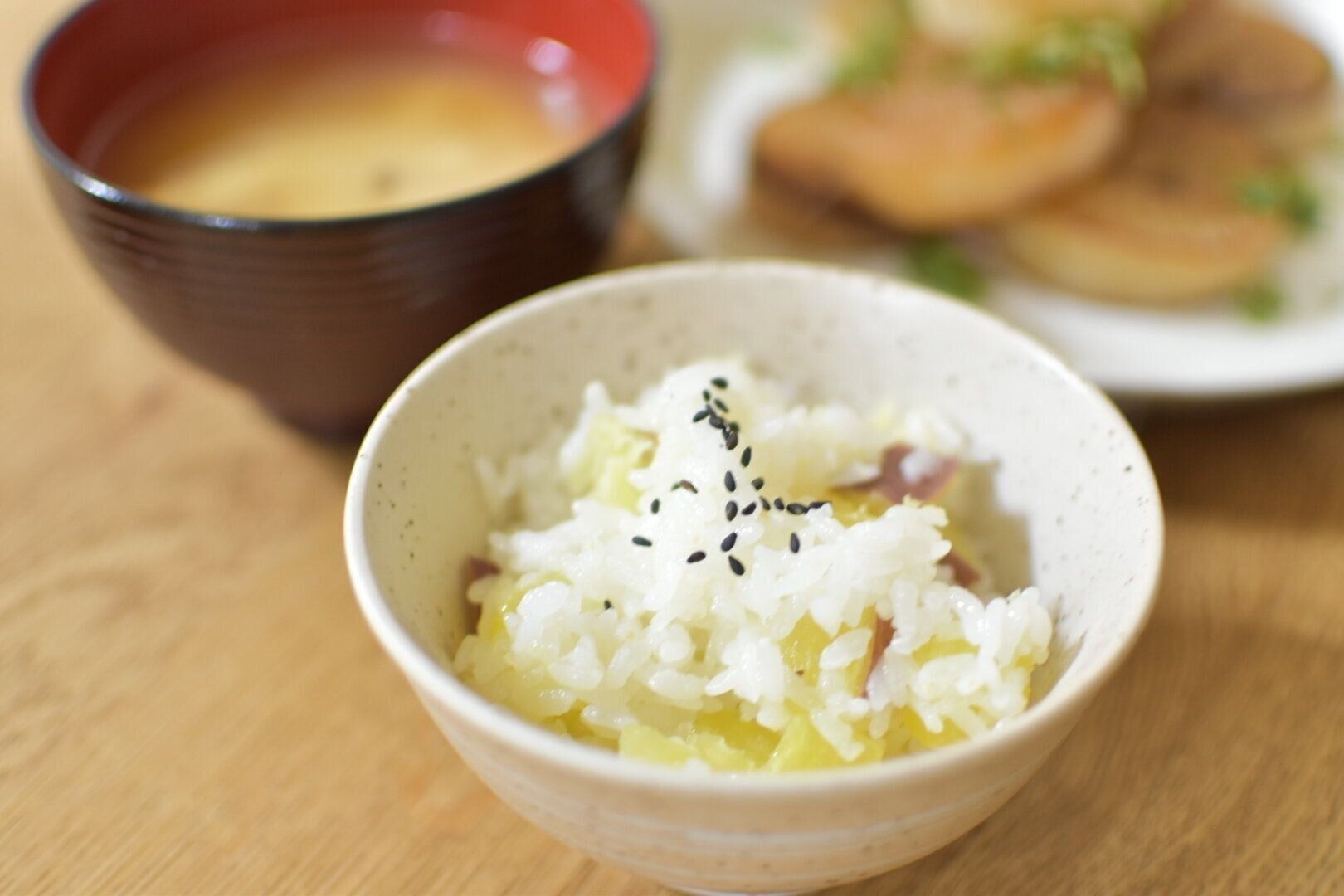 さつまいもの甘みを塩が引き立ててくれておかわり必須の炊き込みごはん。火が通りやすいように1cm角にサイズをそろえてカットするようにしましょう。子どもに人気のメニューです。
