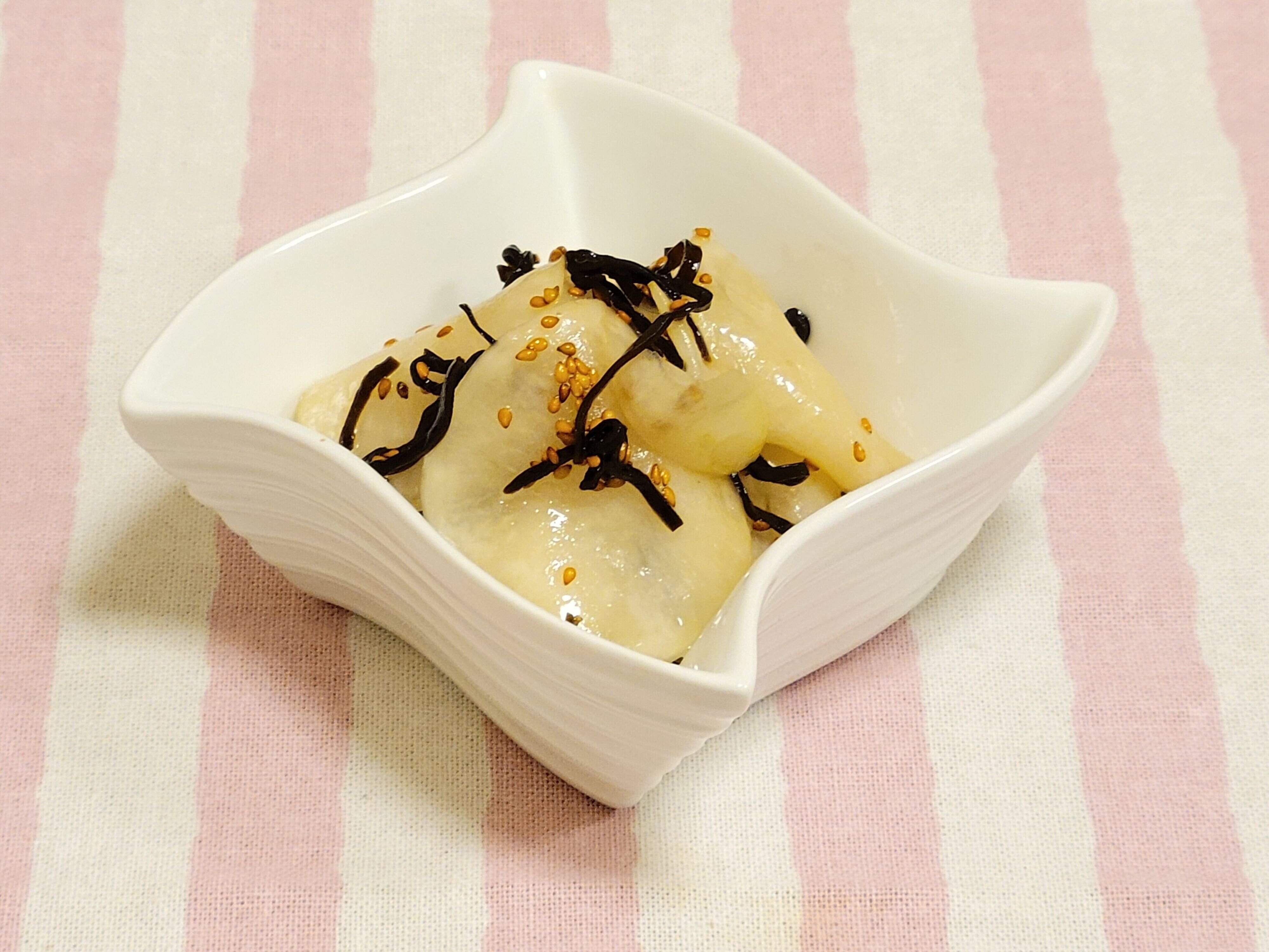 すぐに食べてもよいですが、1時間程度おくと塩昆布の味が小かぶにしみ込んでよりおいしくなります。