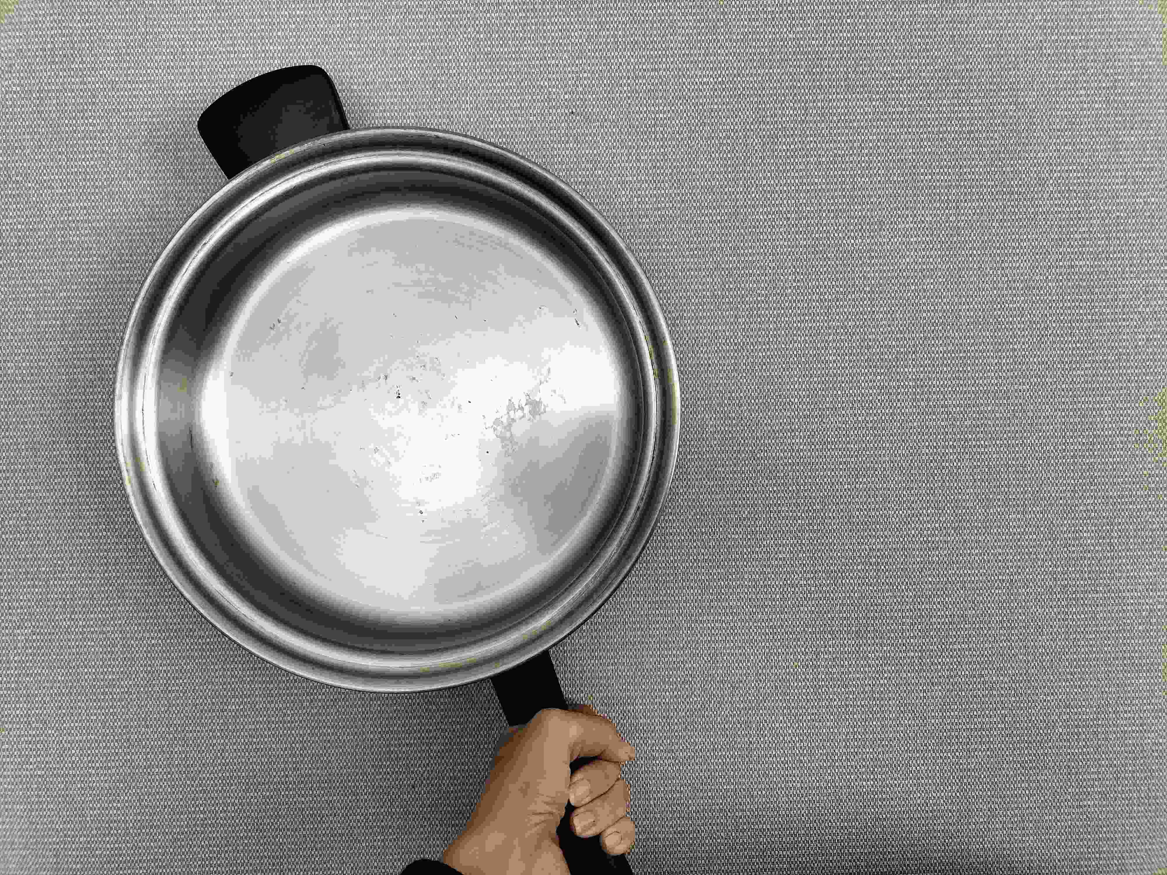 そして、チキンライス作りと卵を焼く作業に2つもフライパンは出したくない!そんな葛藤からチキンライスを作ったフライパンを洗おうとするものなら、なかなかのこびりつき。そしてスポンジがすごいことに…。もうこの時点で疲れちゃいます。