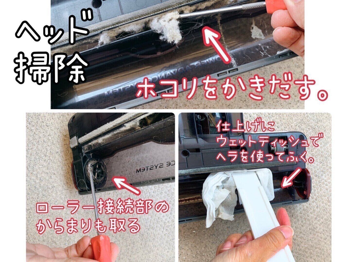 この時に取りきれなかった細かいホコリもウエットティッシュについてくるので、奥までキレイにすることができます。ローラーと同じく、ヘッド本体の接続部分も忘れずに掃除してみて下さいね。
