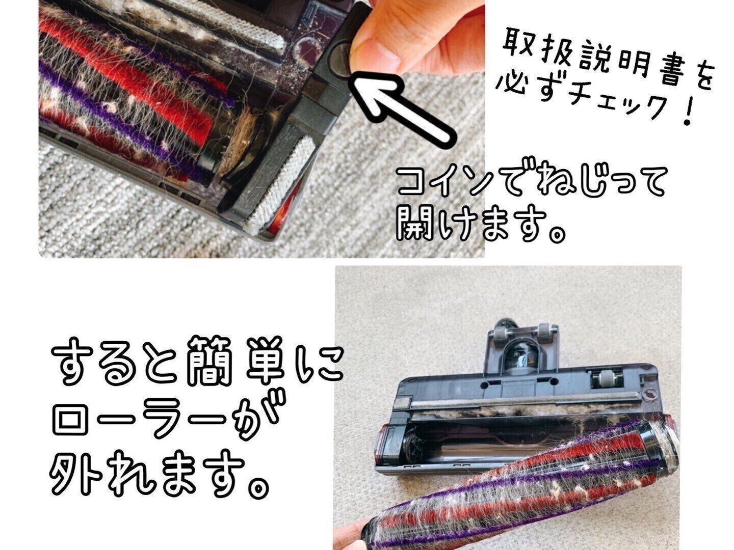 まずは、ご自宅にある掃除機の取扱説明書を必ずご確認くださいね。ローラーの外し方もメーカーにより異なりますので、ご注意ください。