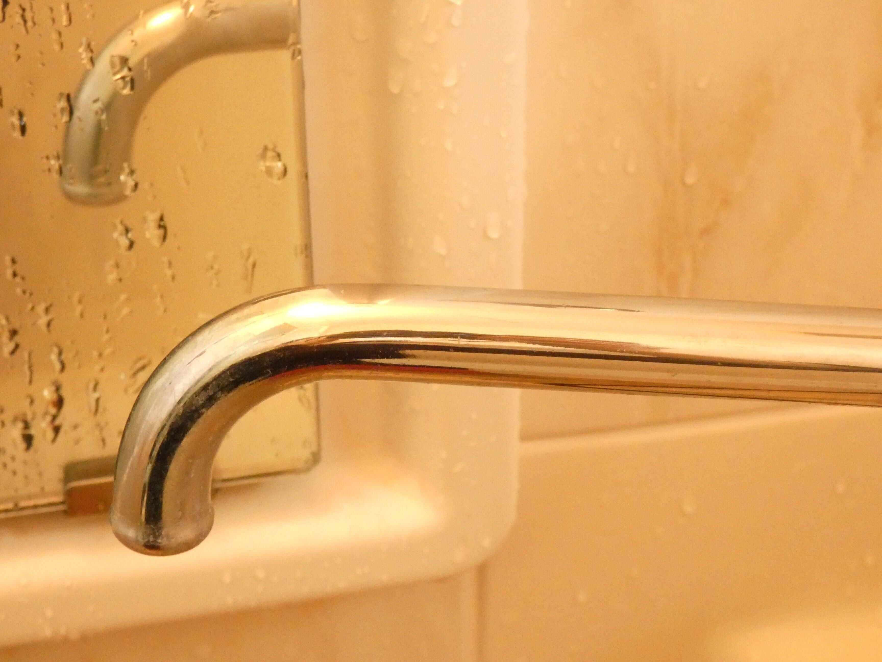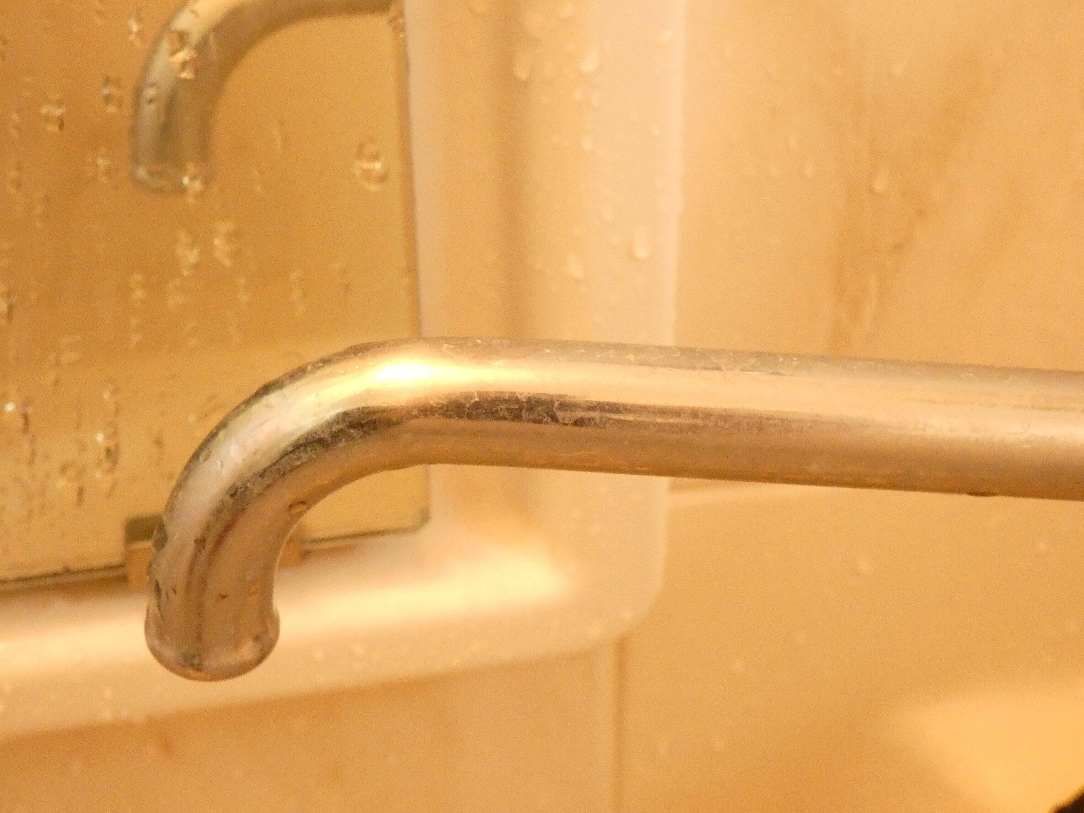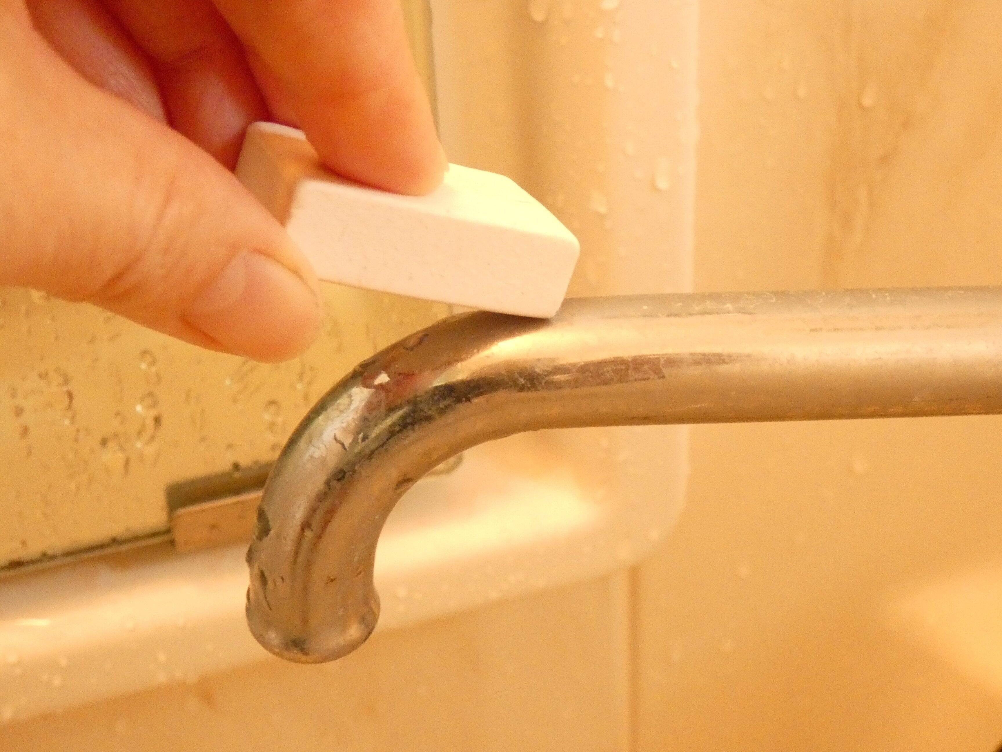 浴室の蛇口で試してみました。水アカで真っ白になっている部分を軽くこすります。