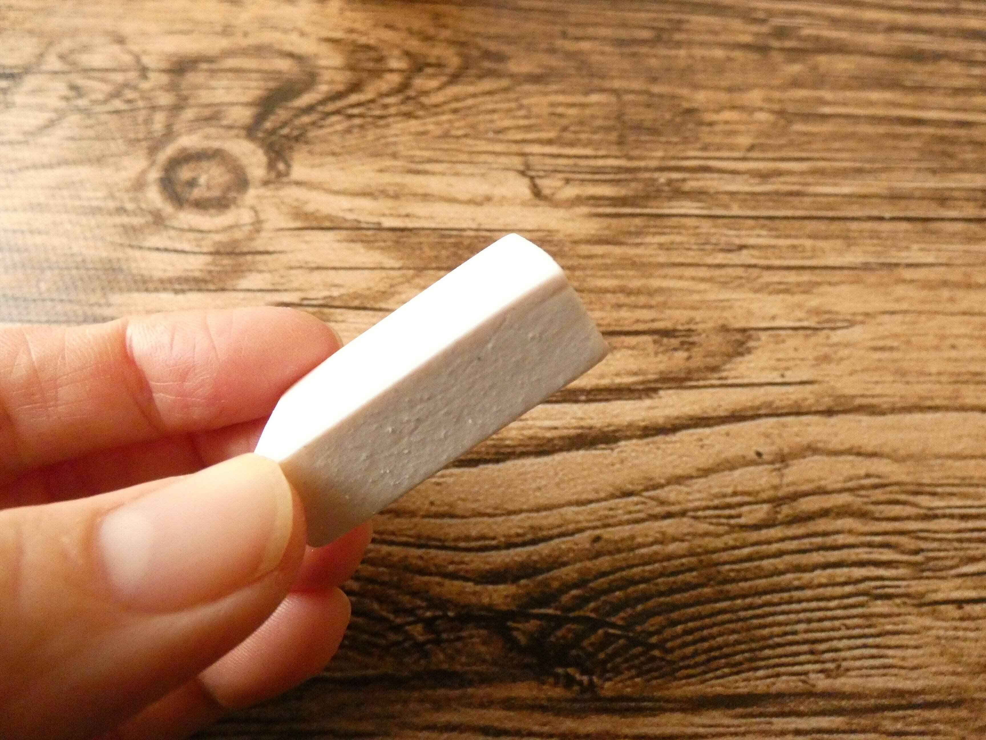 使い方は簡単で、まずは汚れているところを水で濡らします。普通の消しゴムと同じように汚れの上から直接こすればOK。汚れが浮いてきたら乾いた布で拭き取ります。