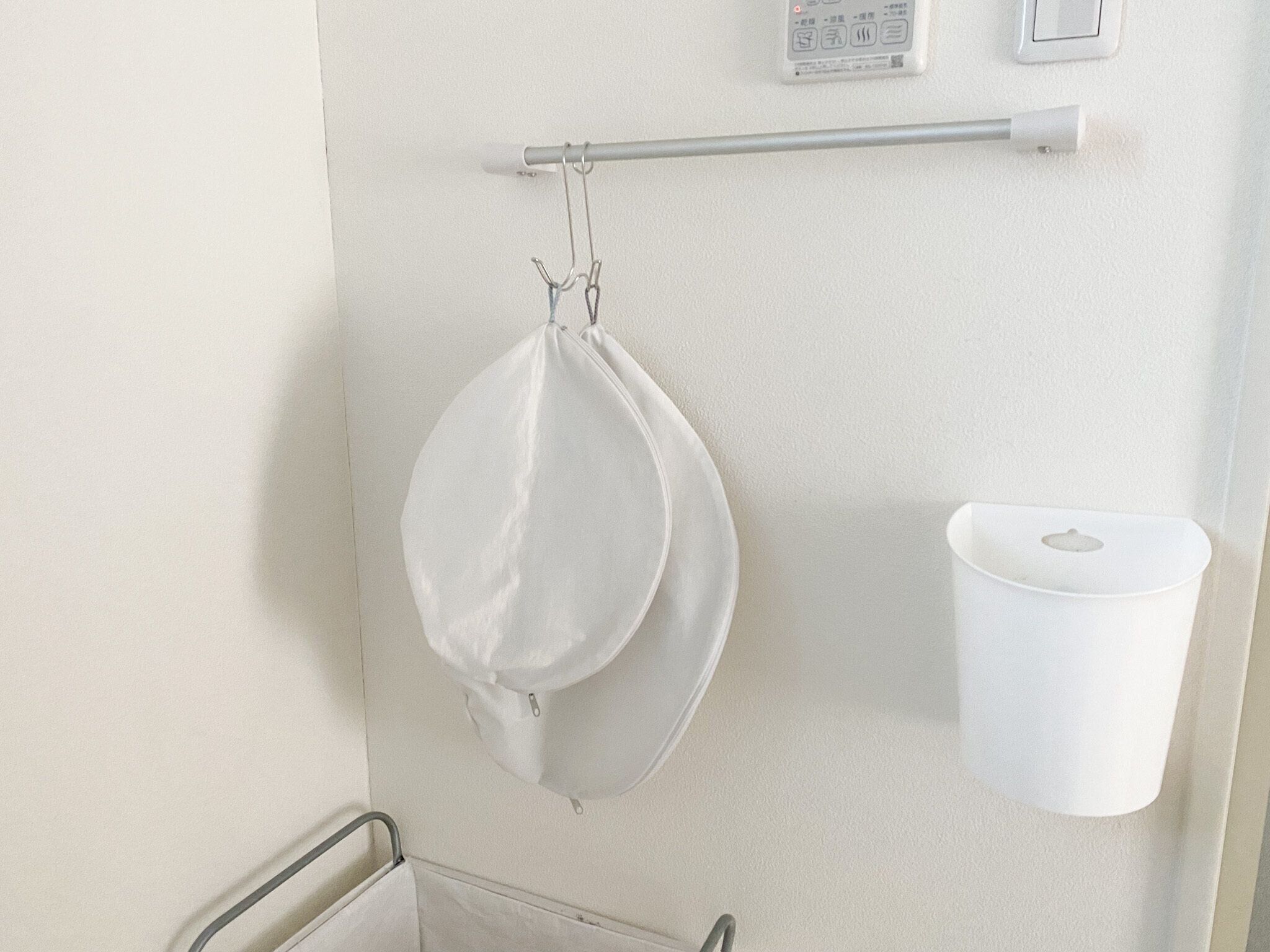 最後に夜、お風呂から上がったあとバスタオルなどのタオル類とその日に着た洋服を洗濯機に入れて洗って干して、浴室乾燥機で乾かす。(浴室乾燥機がない場合は洗濯乾燥機、除湿機を代わりに使うといいと思います)
