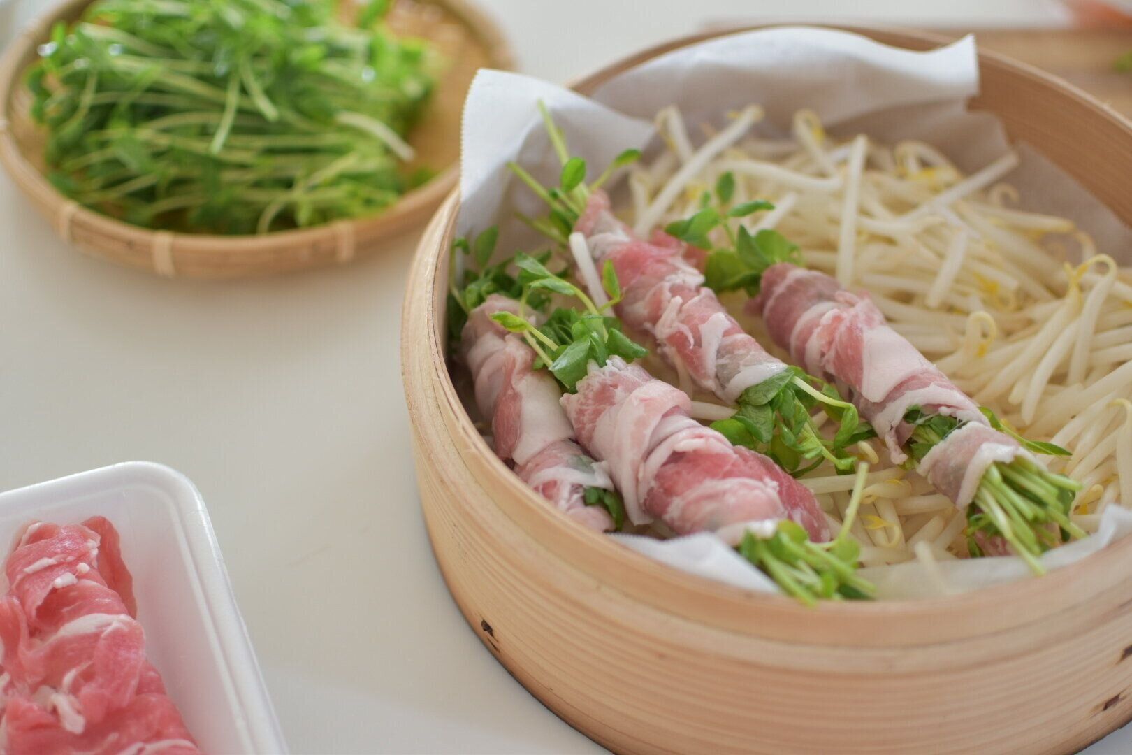 今日はあっさり食べたい、と感じた日は豆苗がおすすめ。蒸してもおいしいのが肉巻きレシピの良いところ。