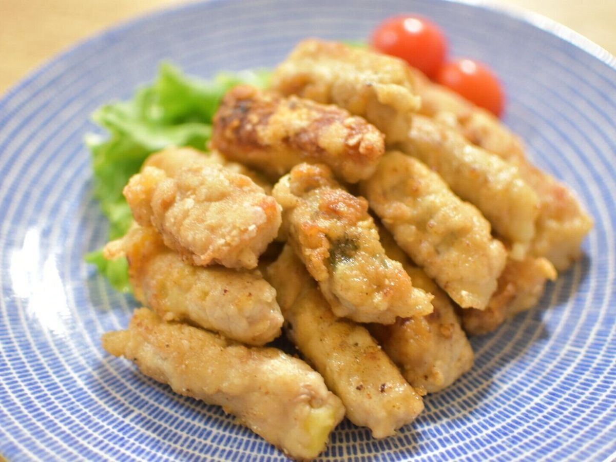 片栗粉をたっぷりつけてから揚げにしたり、パン粉をつけてフライにしても。何が入っているのか見た目では分からないので、食べたときに楽しむことができます。