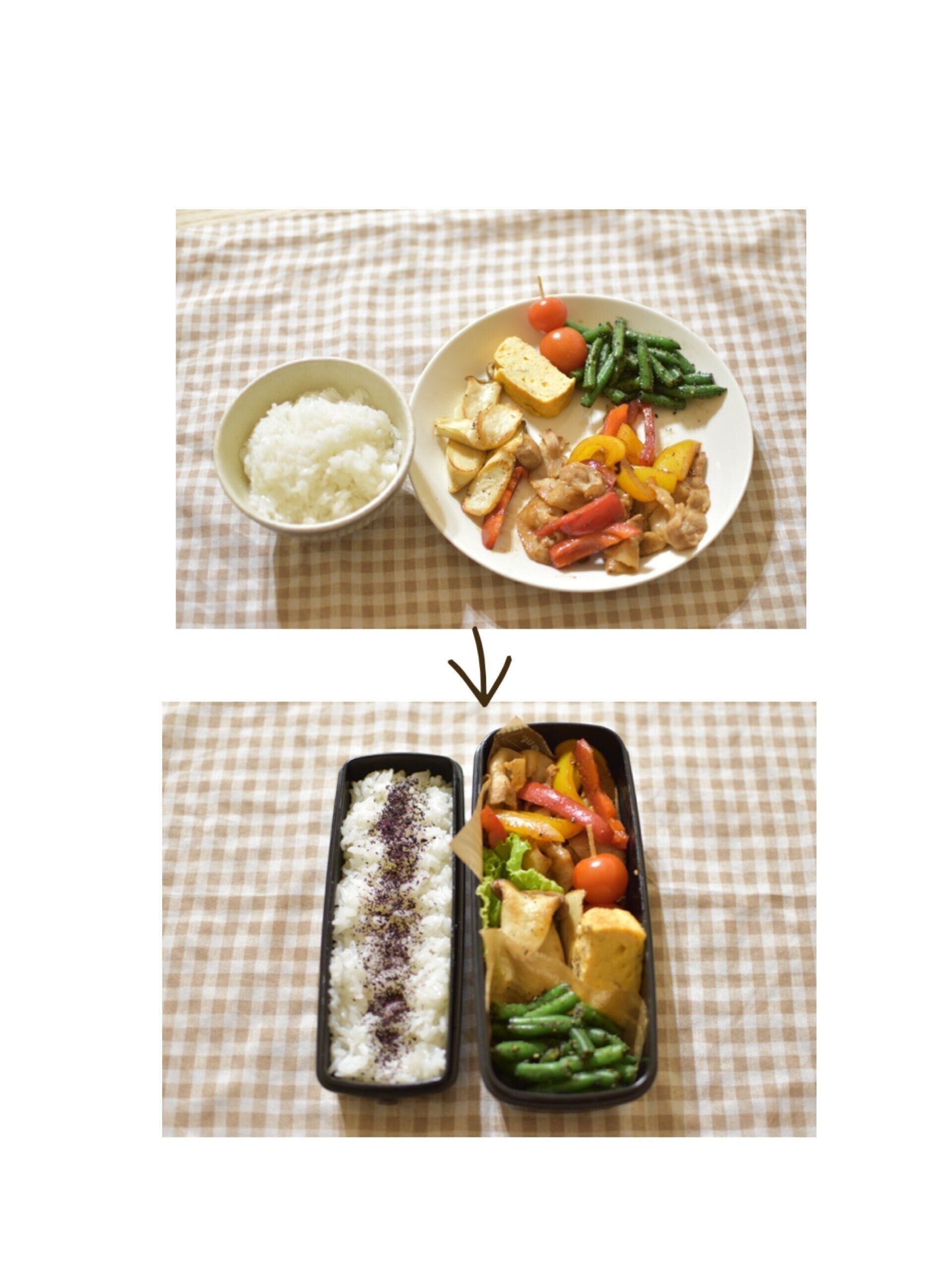 お弁当の栄養バランスに続いて気になるのが量。知らずに詰めすぎている場合もあるので、1度お皿に並べてみるのがおすすめ。