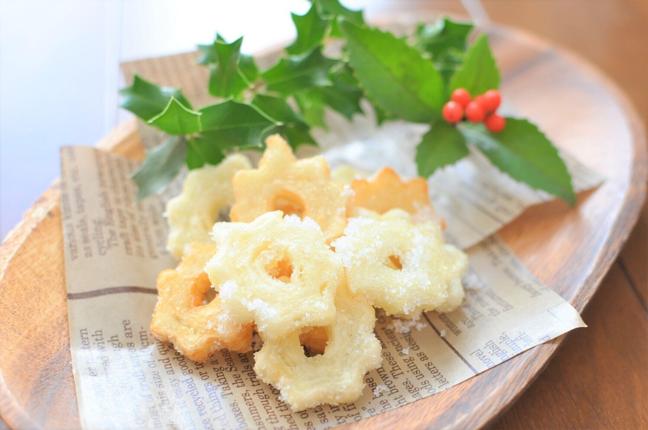 ホットケーキミックスと違って生地に甘味がないので、グラニュー糖をしっかりからめるのがおいしさのポイントとなります。