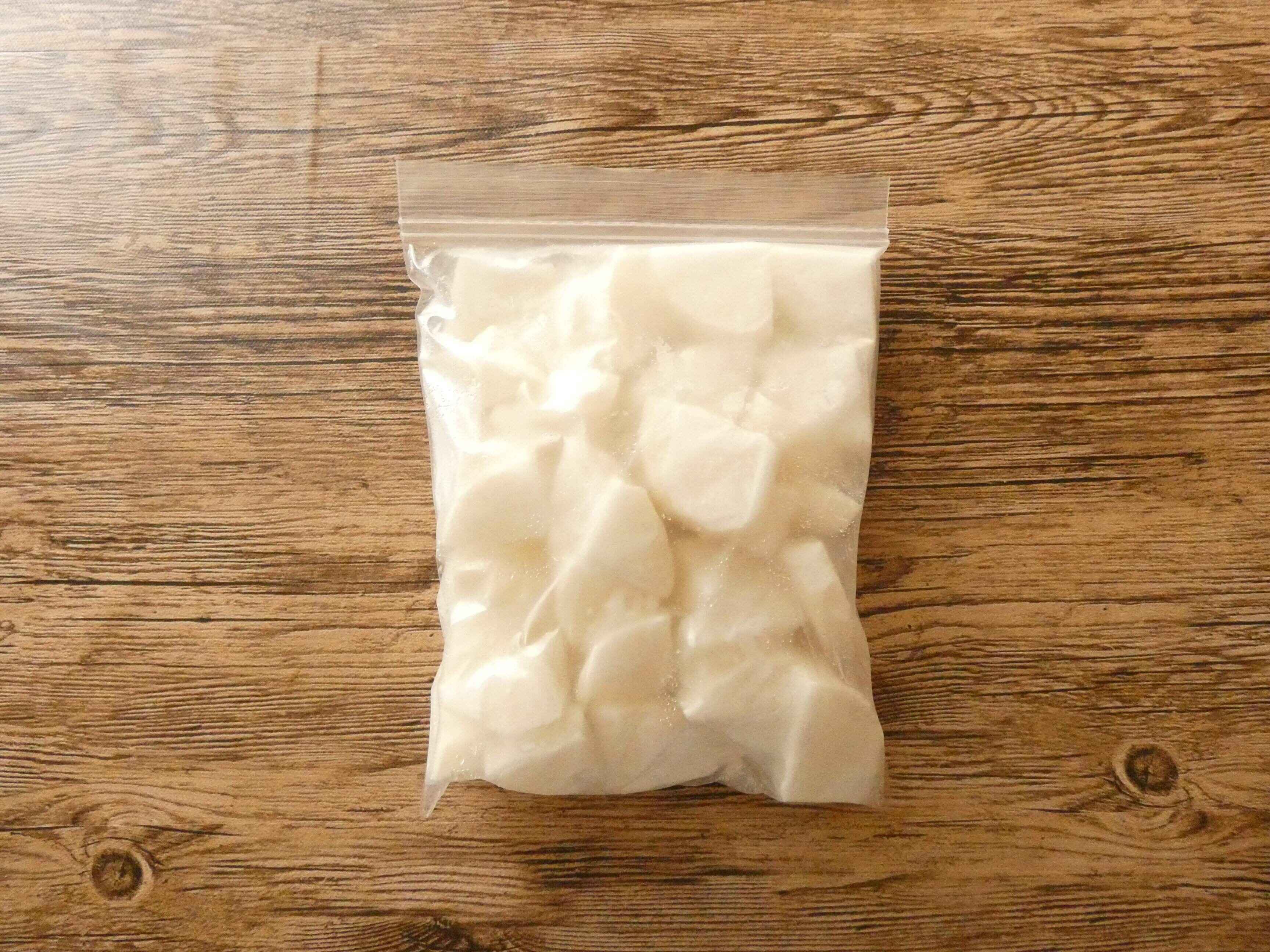 ジッパー付きの袋に入れて空気を抜き、薄く平らにして冷凍します。