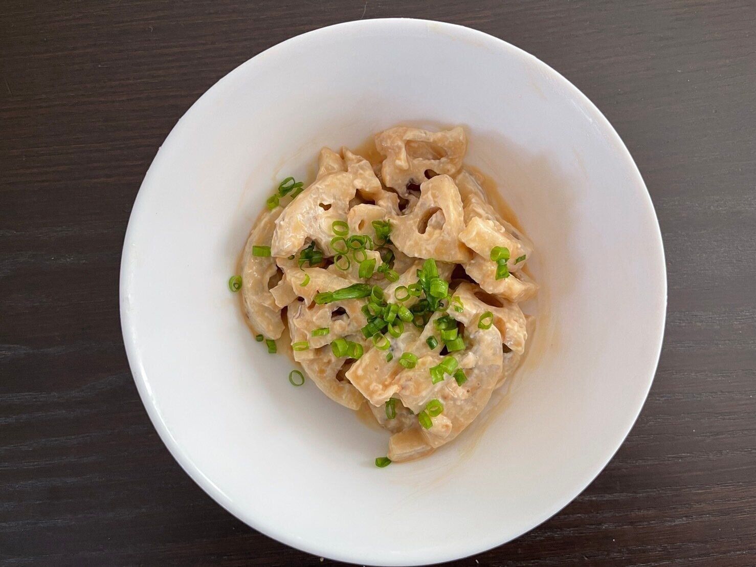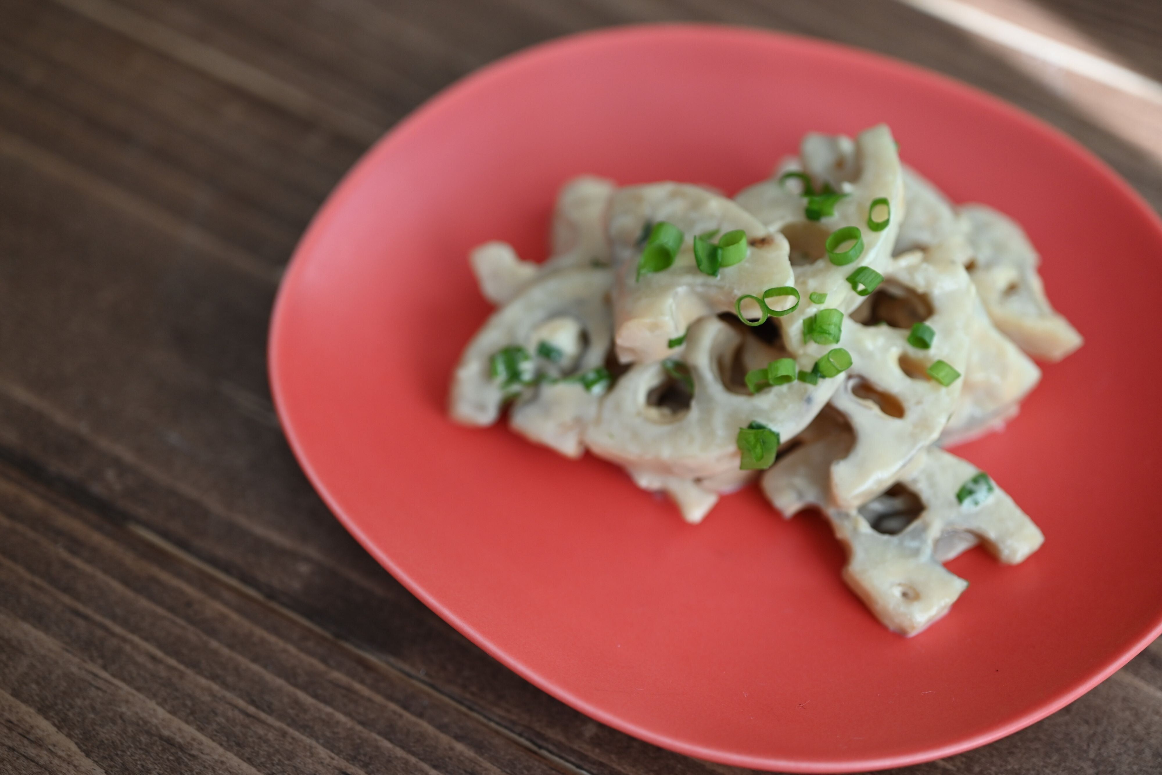 レンジ加熱して混ぜるだけ!れんこんのクリームチーズ和えのレシピです。