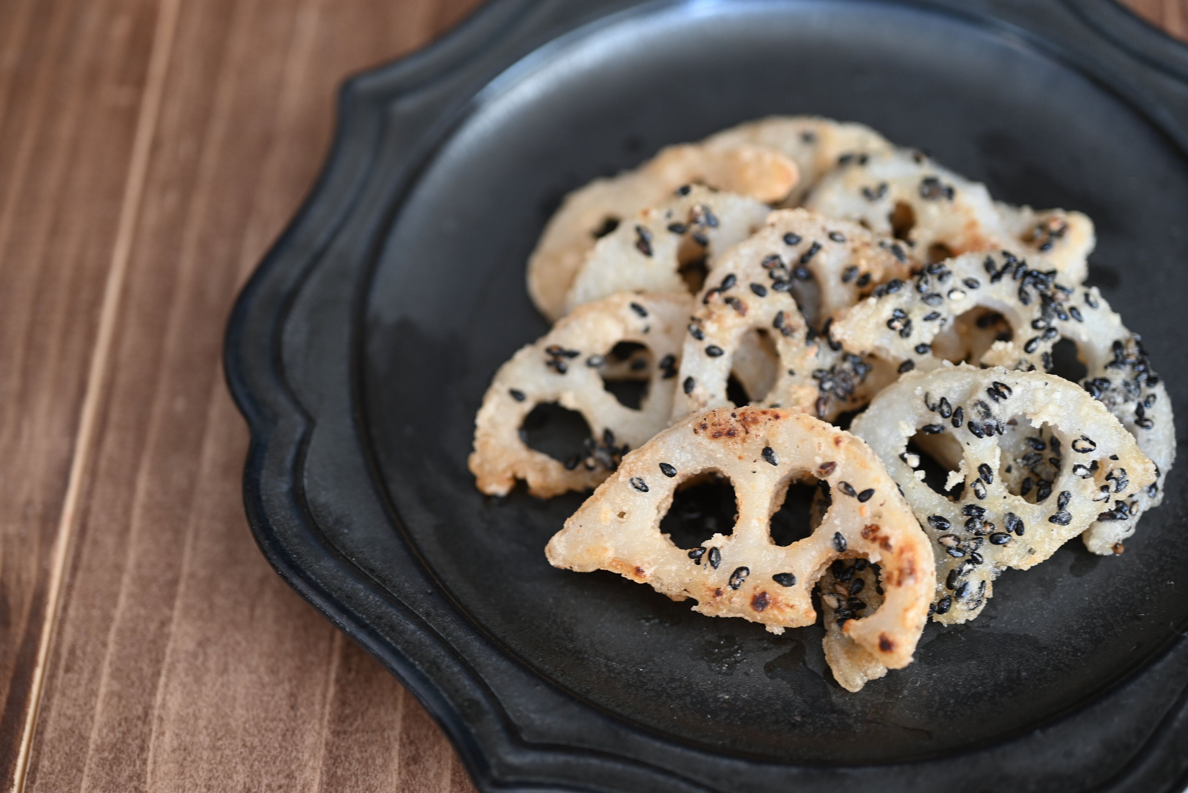 黒ごまがポイント!れんこんの黒ごま揚げ焼き