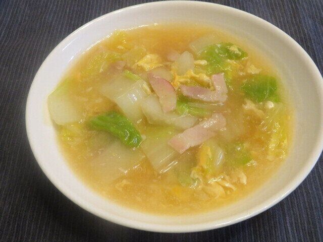 ベーコンのうまみがスープに溶けだし、どこかなつかしくほっとする味。