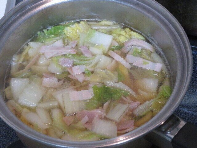今回は白菜4分の1玉に対し、60グラムのベーコンを使いました。