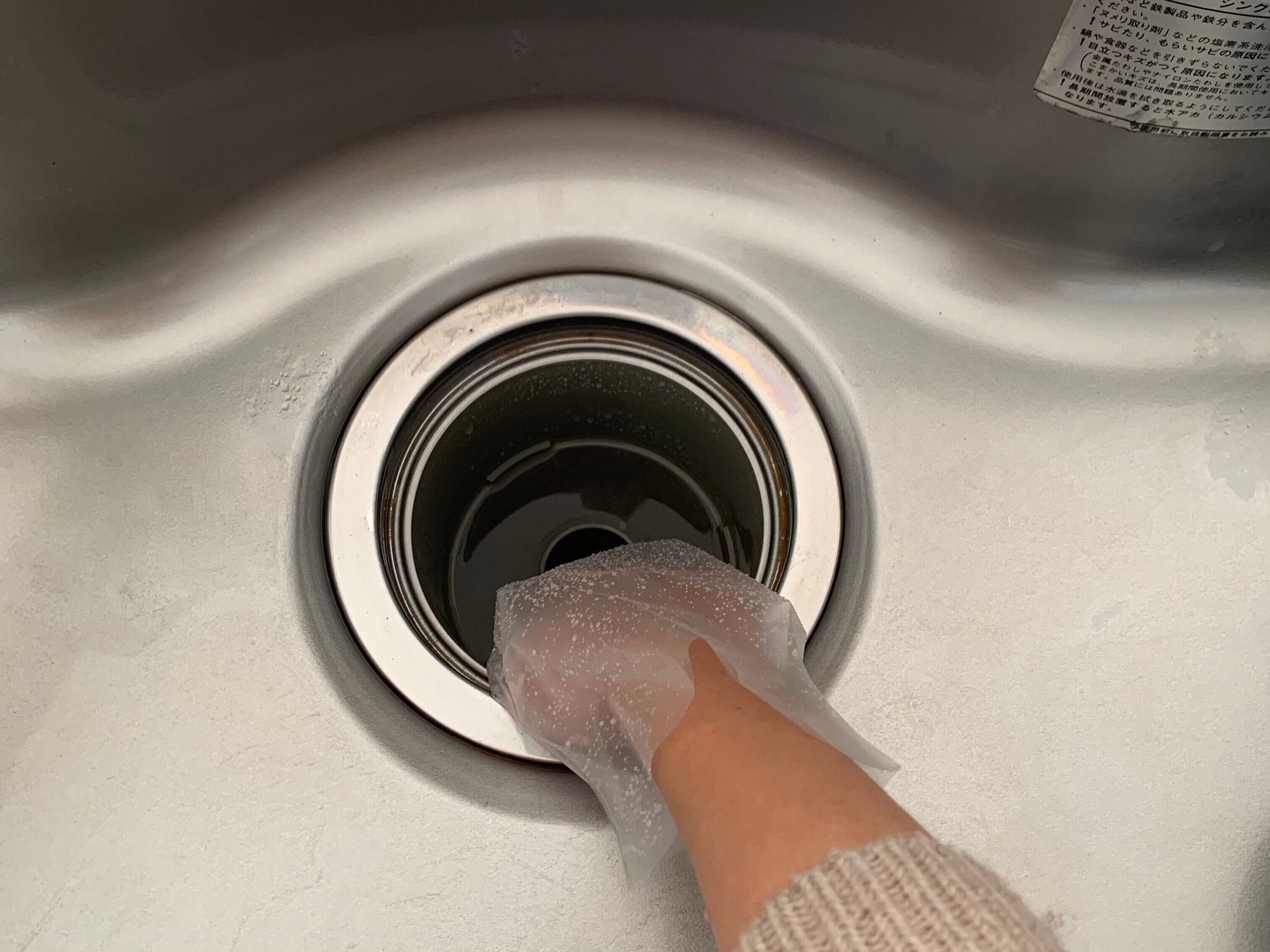 シンク周りを一通り掃除したら、排水溝部分も掃除します。