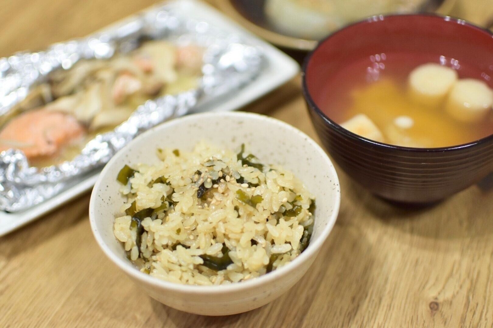 白ごまの香ばしさと優しいうま味がおいしい炊き込みごはん。混ぜ込むタイプのわかめご飯もおいしいですが、炊き込みごはんも負けてません。