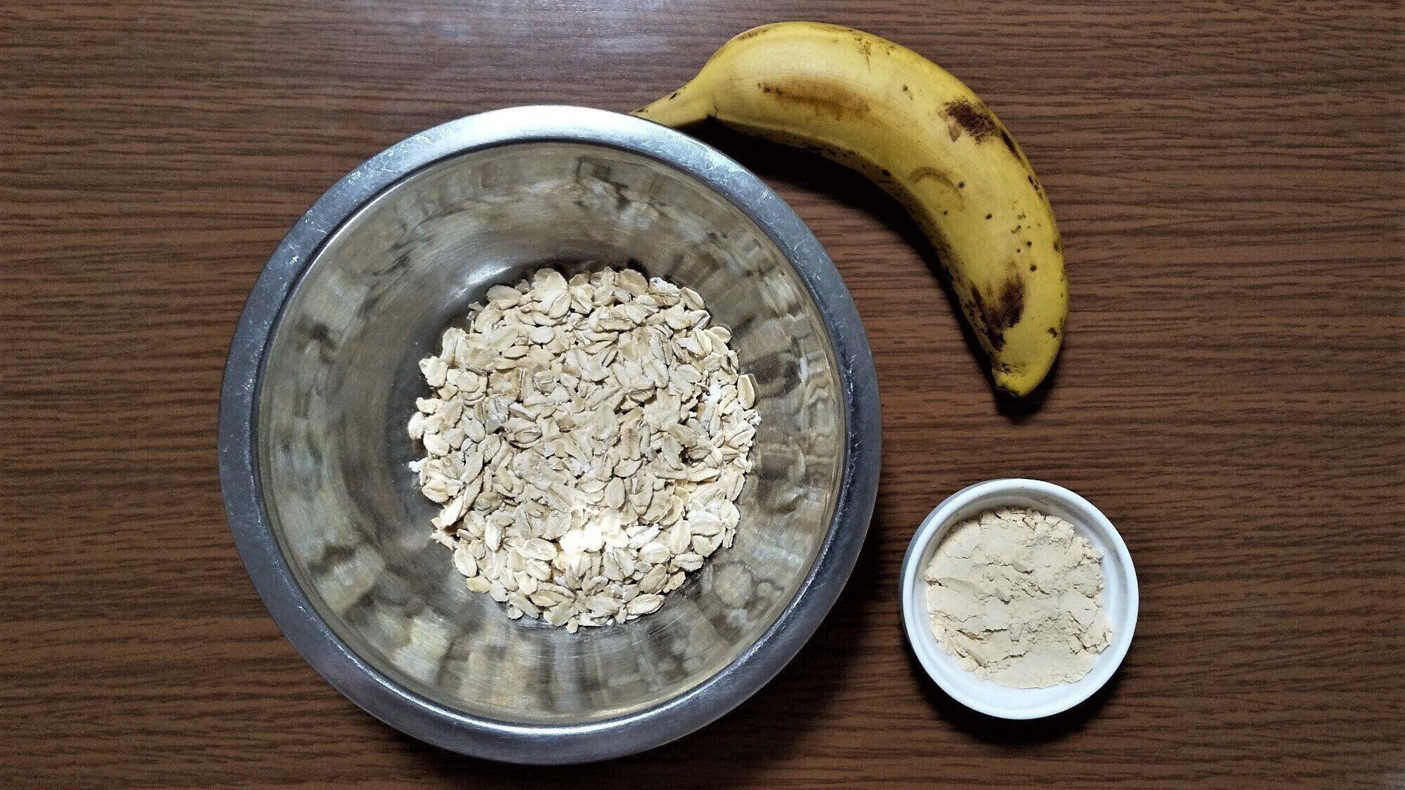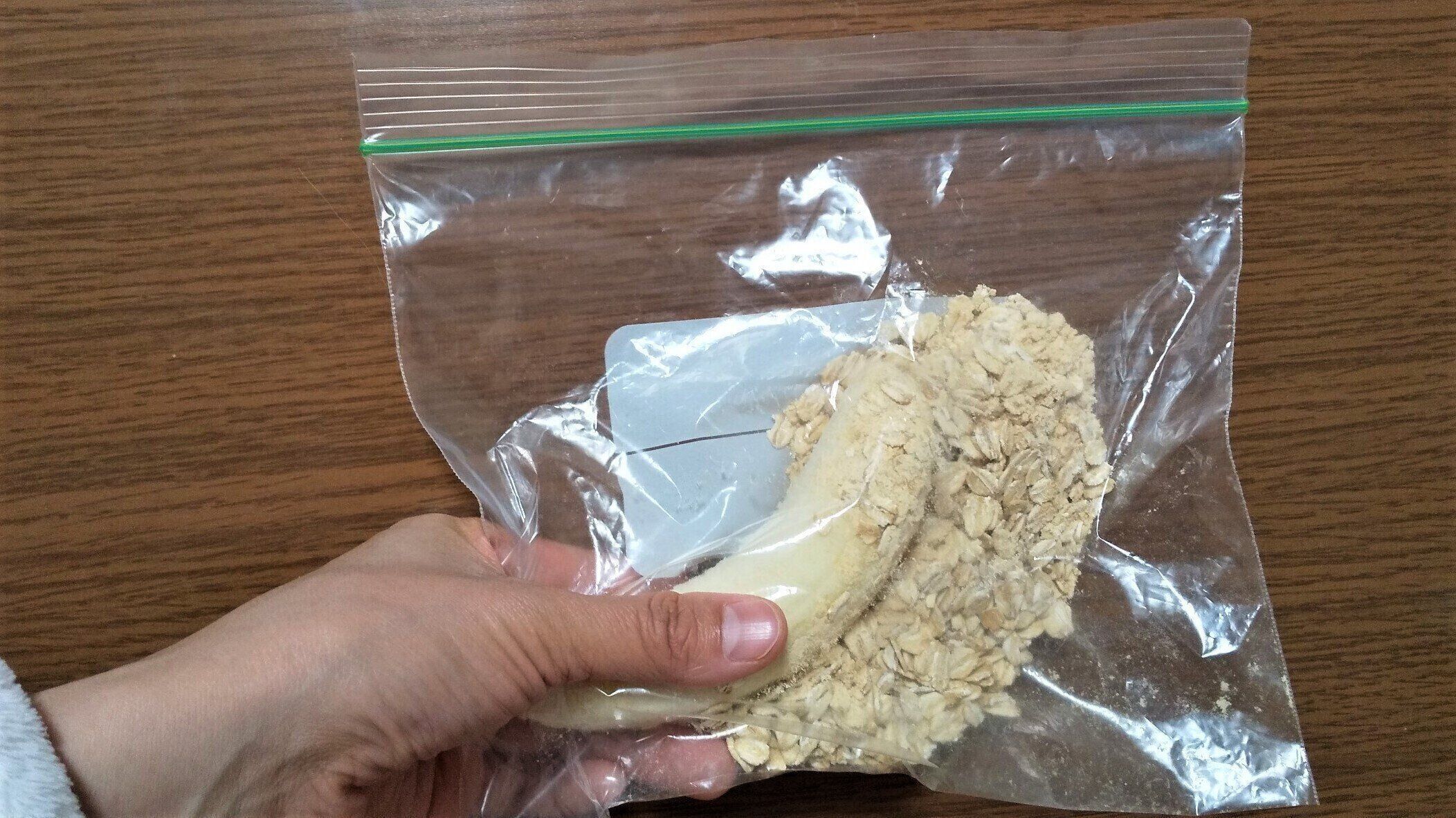 水分を加えなくても、バナナ自体が水分を多く含んでいるので、オートミールもしっとりふっくらと仕上がります。