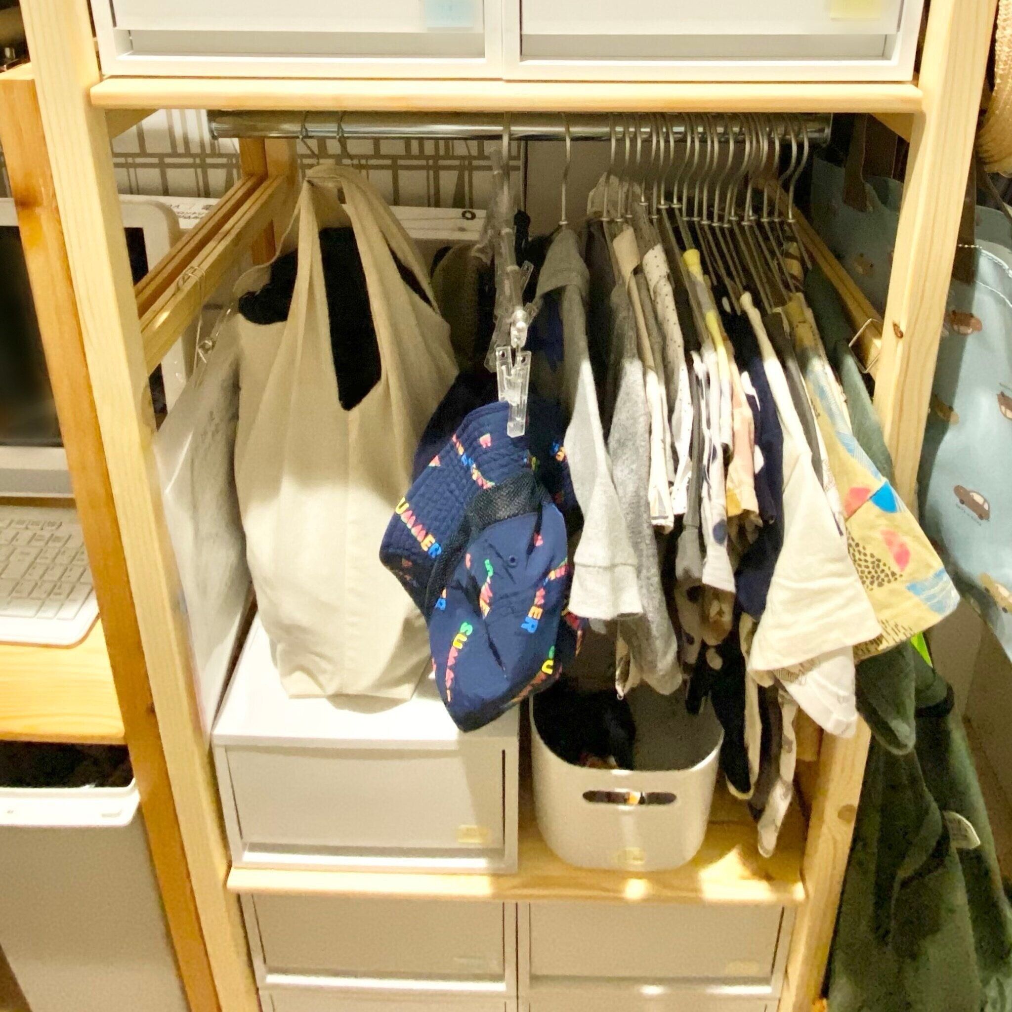 今まで子どもの服は畳んでいましたが、収納を見直して吊るすようにしたらとてもラクで、時短につながりました。