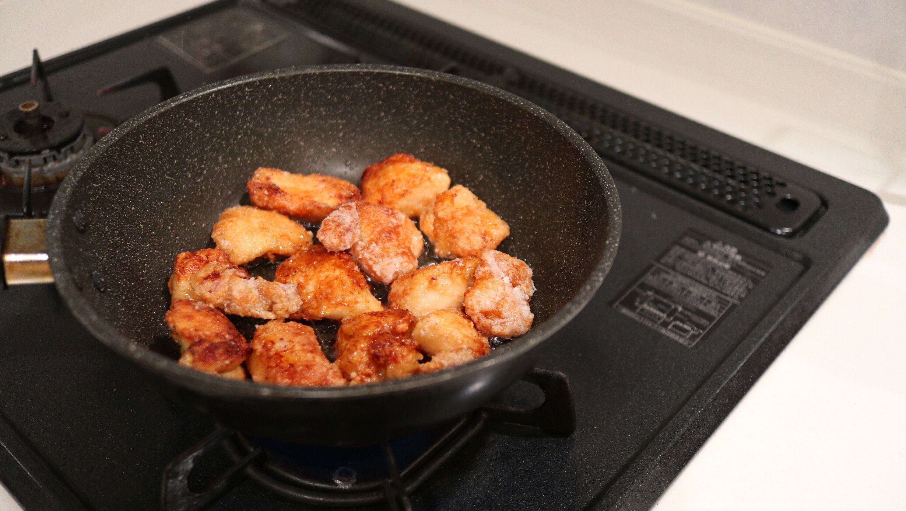 片栗粉はしっかりつけると、カリカリ食感になっておいしい!