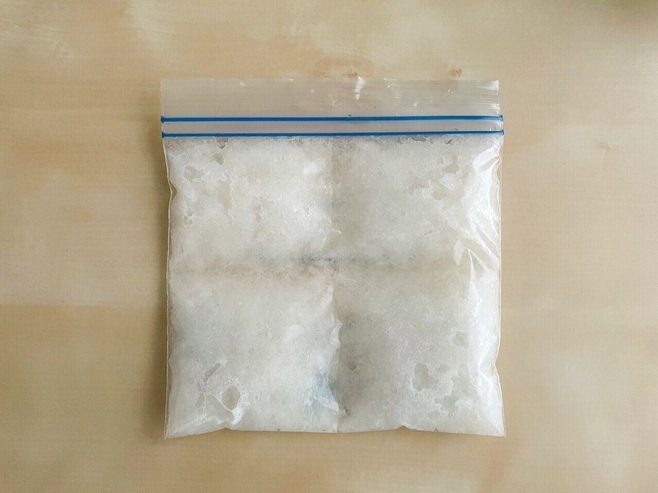 使うときはこの線のところでパキッと折ることができますよ。必要な分を取り出したら、自然解凍でOK。みぞれ煮などに使うときは冷凍のまま加えましょう。
