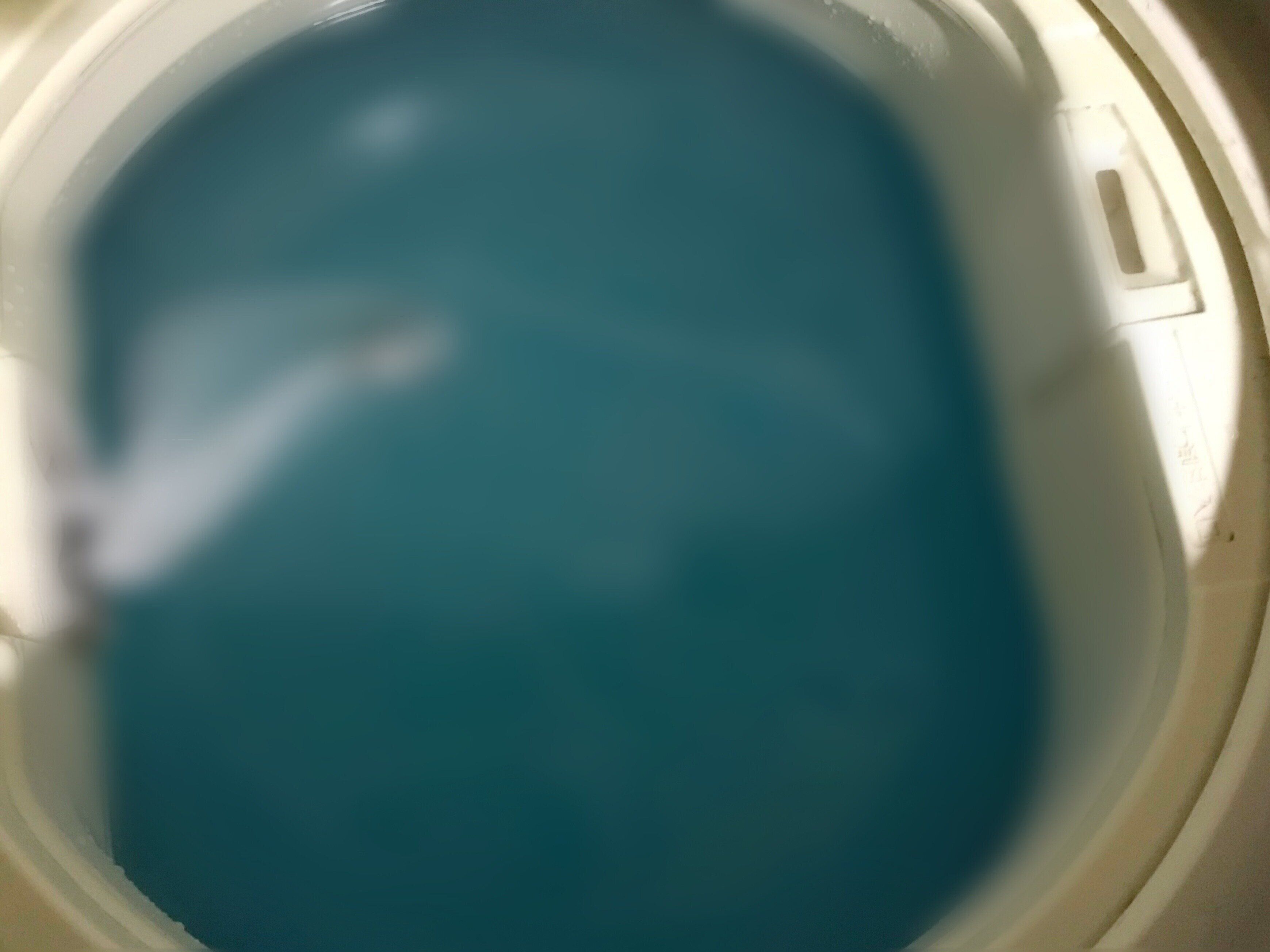 あまりの汚さに洗濯槽の水をぼかし加工していますが、2~3分稼働しただけで汚れがぷかぷかと浮いてきます。放置して2~4時間後には水が透明になるとのことですが、汚れ具合や水質・水温などで透明に変化しない場合もあるので要注意。