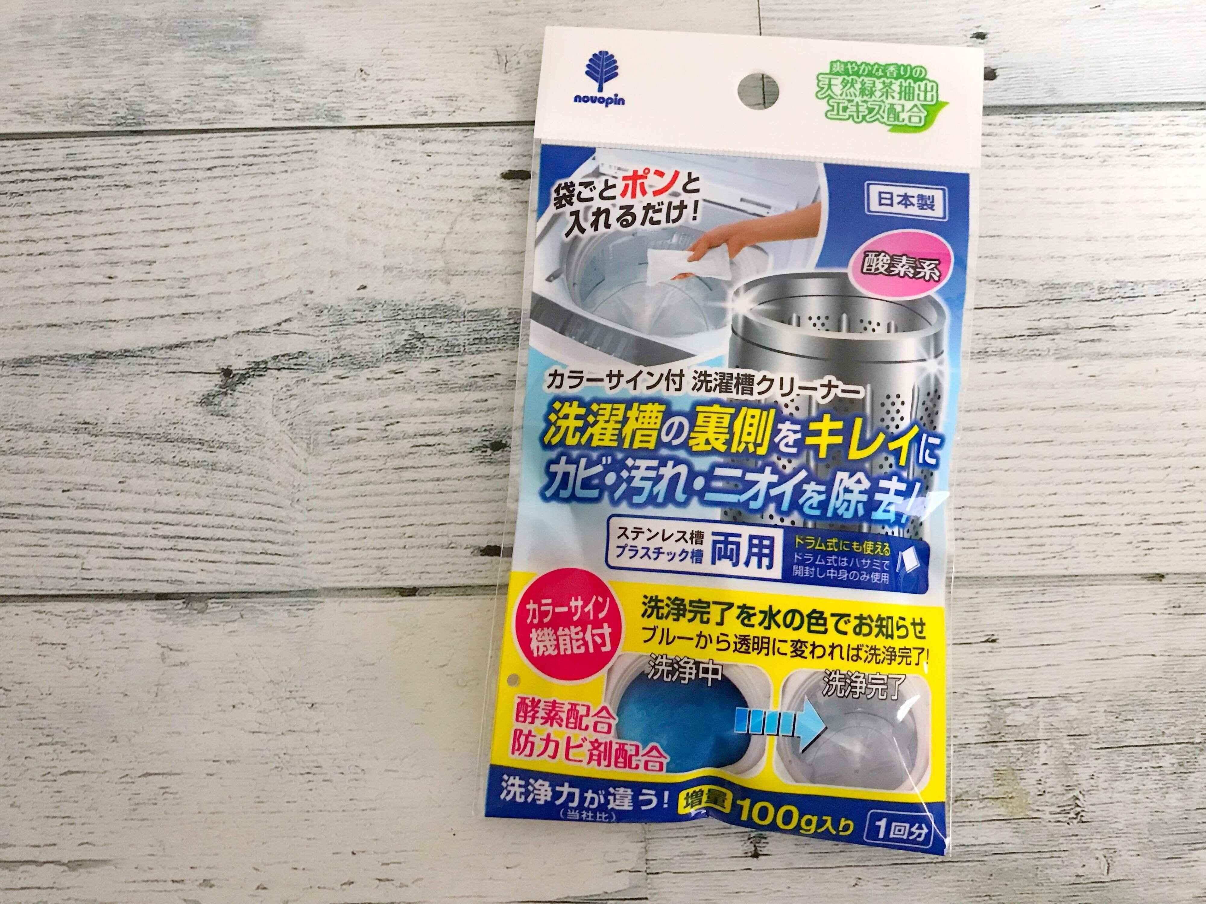 「カラーサイン付 洗濯槽クリーナー」(110円)は、ごっそり取れた汚れに思わず引いてしまうほどの洗浄力。これ一つで洗濯槽の裏側をきれいにするだけでなく、カビ・汚れ・臭いを除去してくれる優れものです。