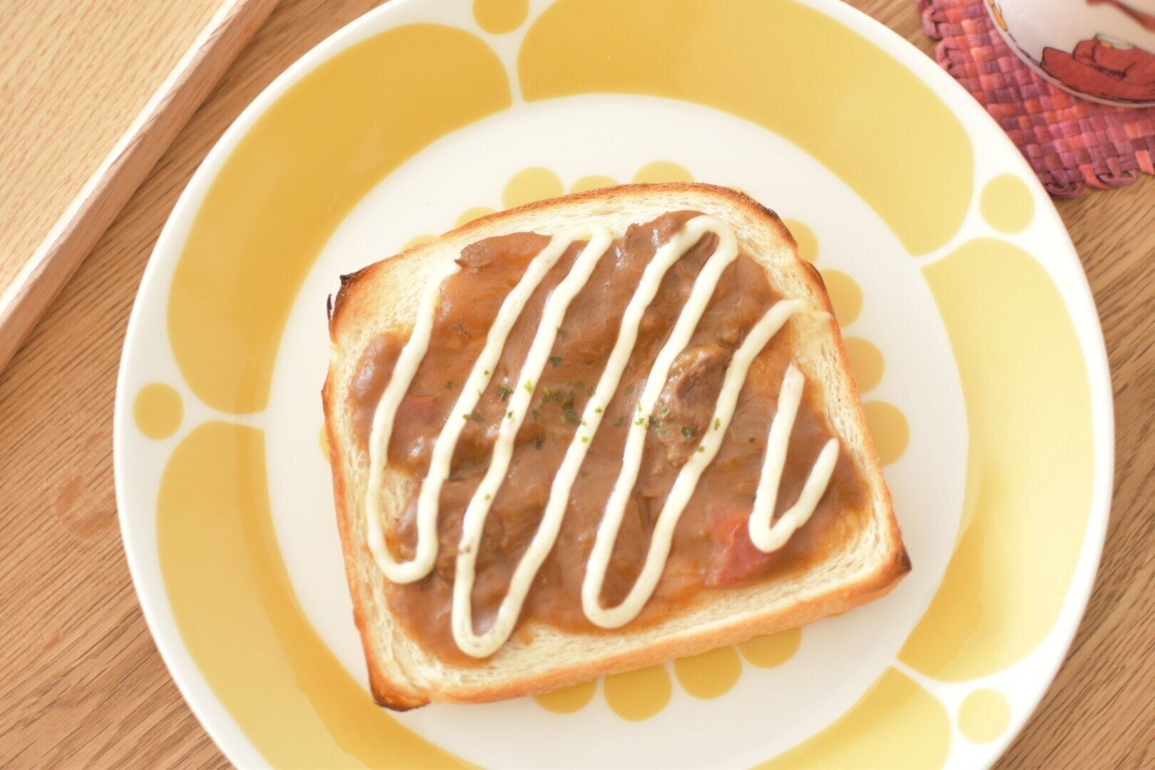 夕食のカレーが少しだけ残ったときや、カレーパンが食べたくなったときにおすすめしたいのが”カレートースト”。そのまま乗せて食べてもおいしいですが、チーズやマヨネーズをトッピングして軽く焼いていただきます。