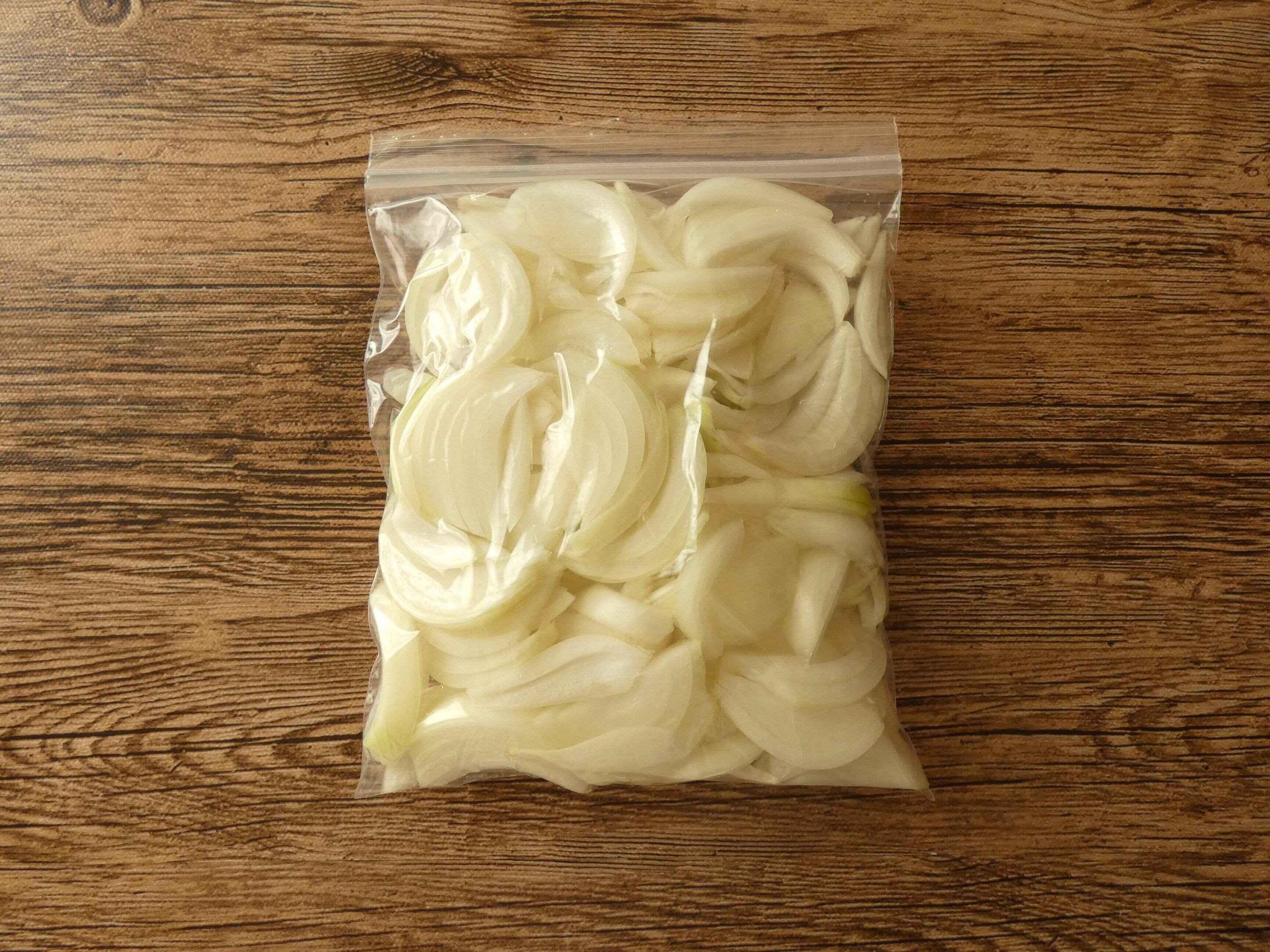 玉葱は冷凍すると繊維が崩れて加熱時間が1/3程度になるので、ハンバーグなどに入れるあめ色玉葱が時短でつくれます。さらにうま味や甘さが出やすくなるので、炒め物やスープなどに入れると玉葱の甘さをより感じるようになります。