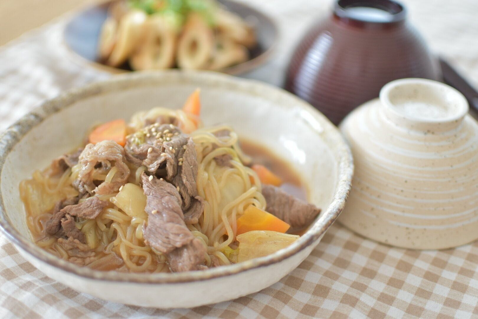 和食の定番”肉じゃが”のじゃがいもの代わりに白菜を使います。じゃがいもに比べて皮むきの手間もなく、煮込む時間が短縮されるというお助けメニュー。甘辛い味付けでご飯がすすみます。