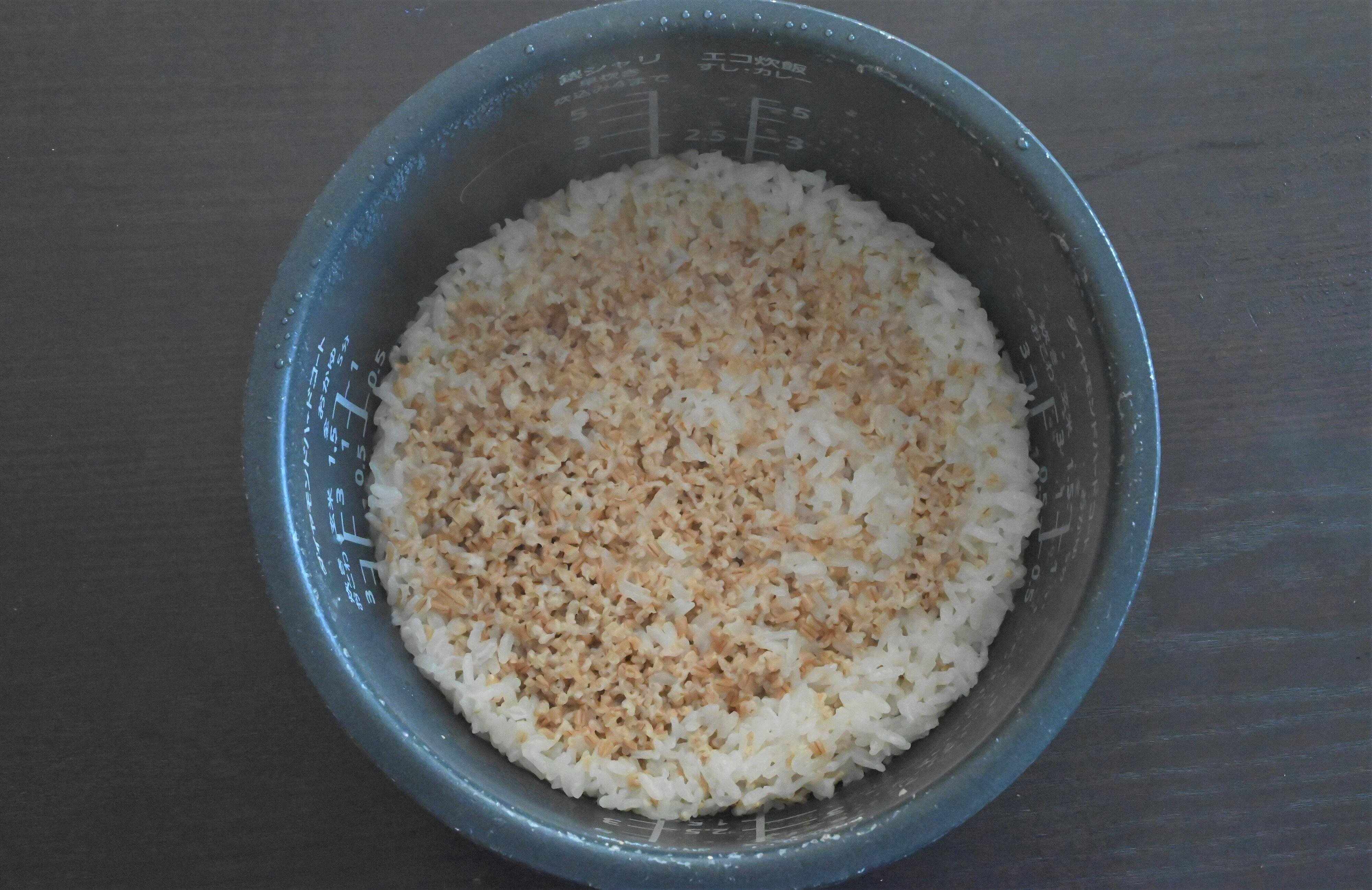 炊飯器で炊くだけだから簡単!白米と混ざっているから臭いが気にならず、食感もいい!味付け調理なしでいつもの白米の代わりとしておいしく食べられますよ。