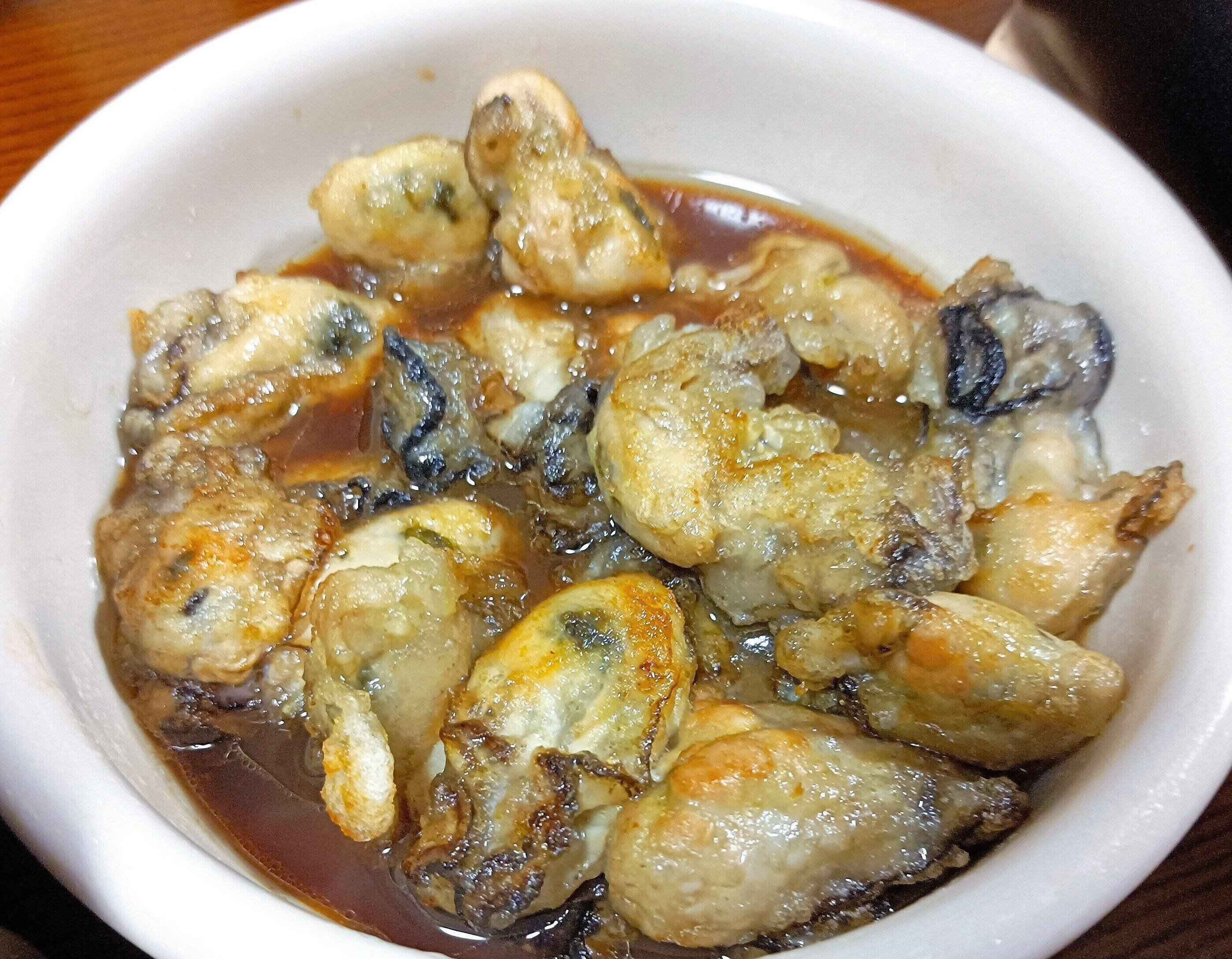 牡蠣の周りに絡めた片栗粉にタレがしみ込み、トロっとしながらも味がしっかり牡蠣に絡まり、ご飯のお供としても最高です。