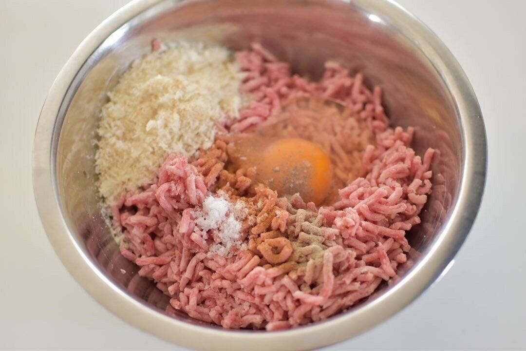 ハンバーグというと[ひき肉・卵・パン粉・牛乳・塩こしょう・ナツメグ・玉ねぎ]の材料で作るのが王道。