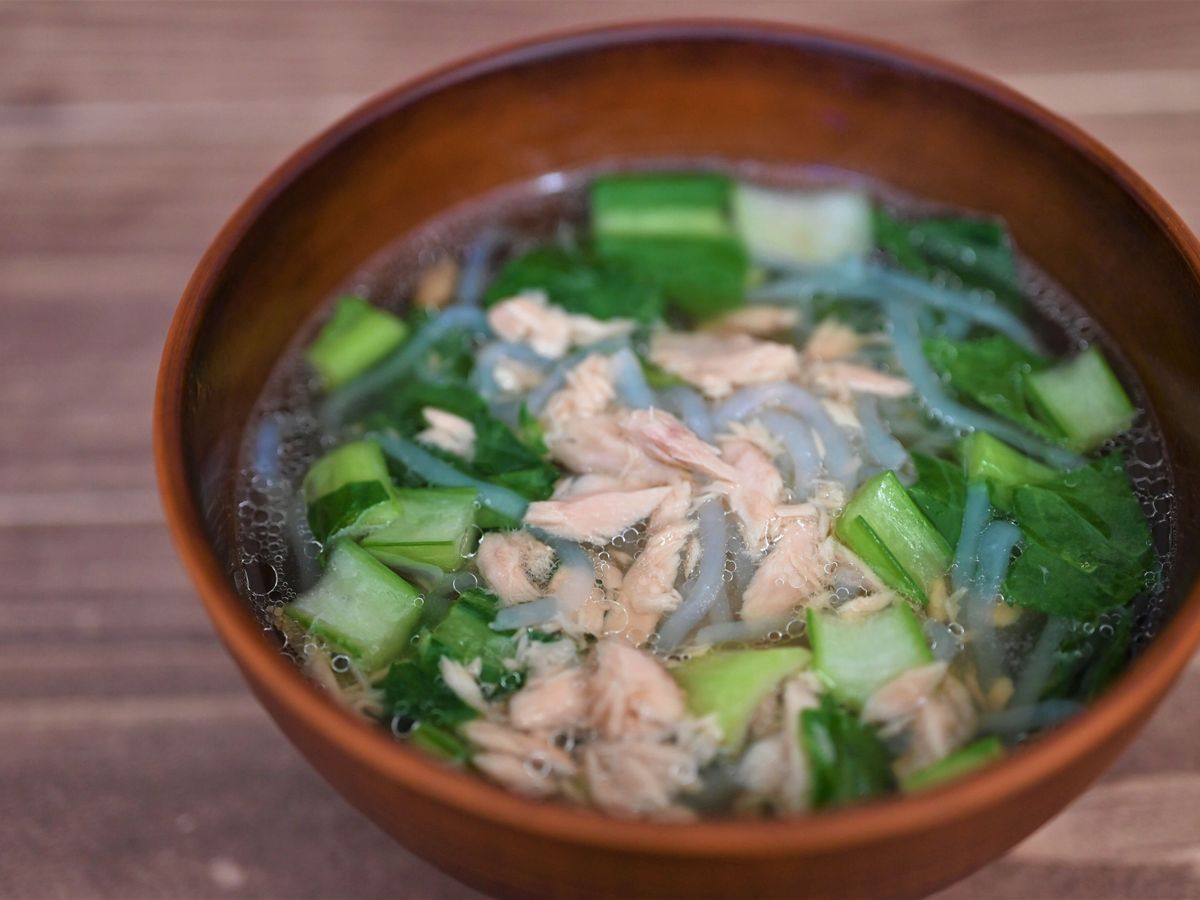 ツナ缶の缶汁まで使う!しらたきツナスープ